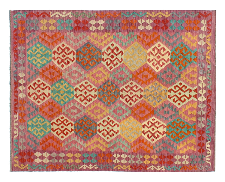 These Kilim rugs have a significant difference from hand-knotted rugs—they are handwoven. As a result, they do not have a high pile of wool and are often flatter and rougher than knotted wool rugs. Their construction is less intricate, making them generally much more affordable. Additionally, Kilim rugs are much lighter and can be laid out on either side. Handwoven Kilims originally come from what was once Persia and are now also widely produced in Afghanistan. They typically feature simple, straight-line patterns, which are characteristic of their weaving technique.