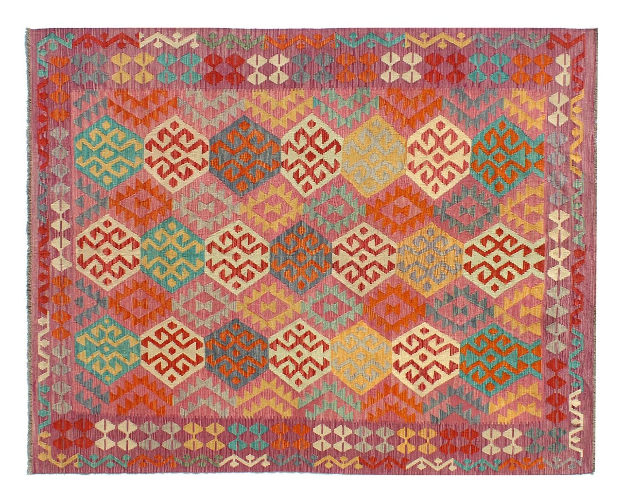 This Kilim Afghan rug has beautiful colors. It is handmade from fine wool. These patterns are traditional design elements that have already been used centuries ago. This particular kilim has been woven by hand in Afghanistan, a country with a long history in weaving and knotting rugs. The rug is robust and can be laid out on both sides.