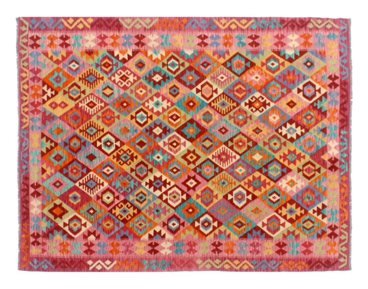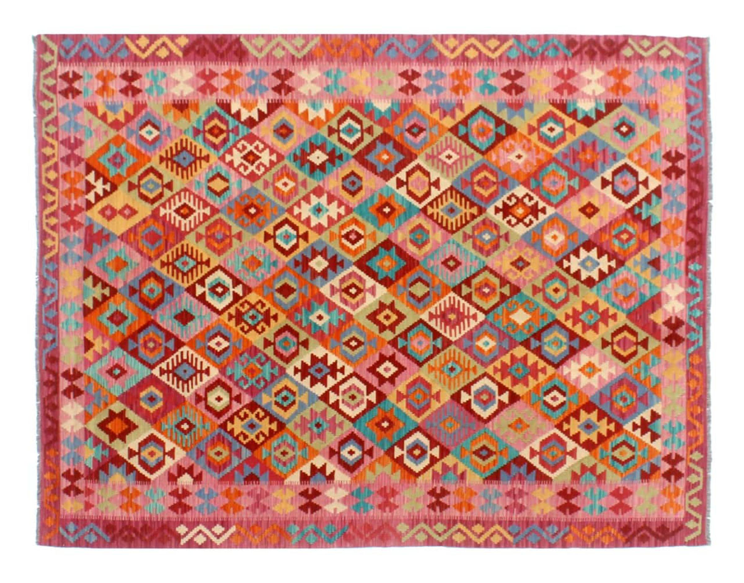 These Kilim rugs have a significant difference from hand-knotted rugs—they are handwoven. As a result, they do not have a high pile of wool and are often flatter and rougher than knotted wool rugs. Their construction is less intricate, making them generally much more affordable. Additionally, Kilim rugs are much lighter and can be laid out on either side. Handwoven Kilims originally come from what was once Persia and are now also widely produced in Afghanistan. They typically feature simple, straight-line patterns, which are characteristic of their weaving technique.