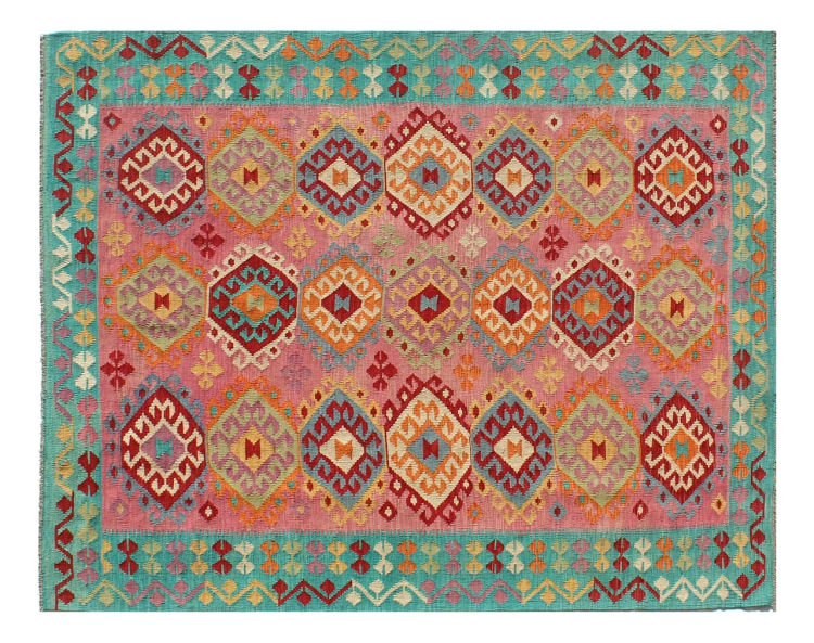 These Kilim rugs have a significant difference from hand-knotted rugs—they are handwoven. As a result, they do not have a high pile of wool and are often flatter and rougher than knotted wool rugs. Their construction is less intricate, making them generally much more affordable. Additionally, Kilim rugs are much lighter and can be laid out on either side. Handwoven Kilims originally come from what was once Persia and are now also widely produced in Afghanistan. They typically feature simple, straight-line patterns, which are characteristic of their weaving technique.
