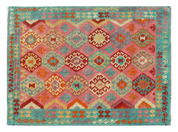 These Kilim rugs have a significant difference from hand-knotted rugs—they are handwoven. As a result, they do not have a high pile of wool and are often flatter and rougher than knotted wool rugs. Their construction is less intricate, making them generally much more affordable. Additionally, Kilim rugs are much lighter and can be laid out on either side. Handwoven Kilims originally come from what was once Persia and are now also widely produced in Afghanistan. They typically feature simple, straight-line patterns, which are characteristic of their weaving technique.
