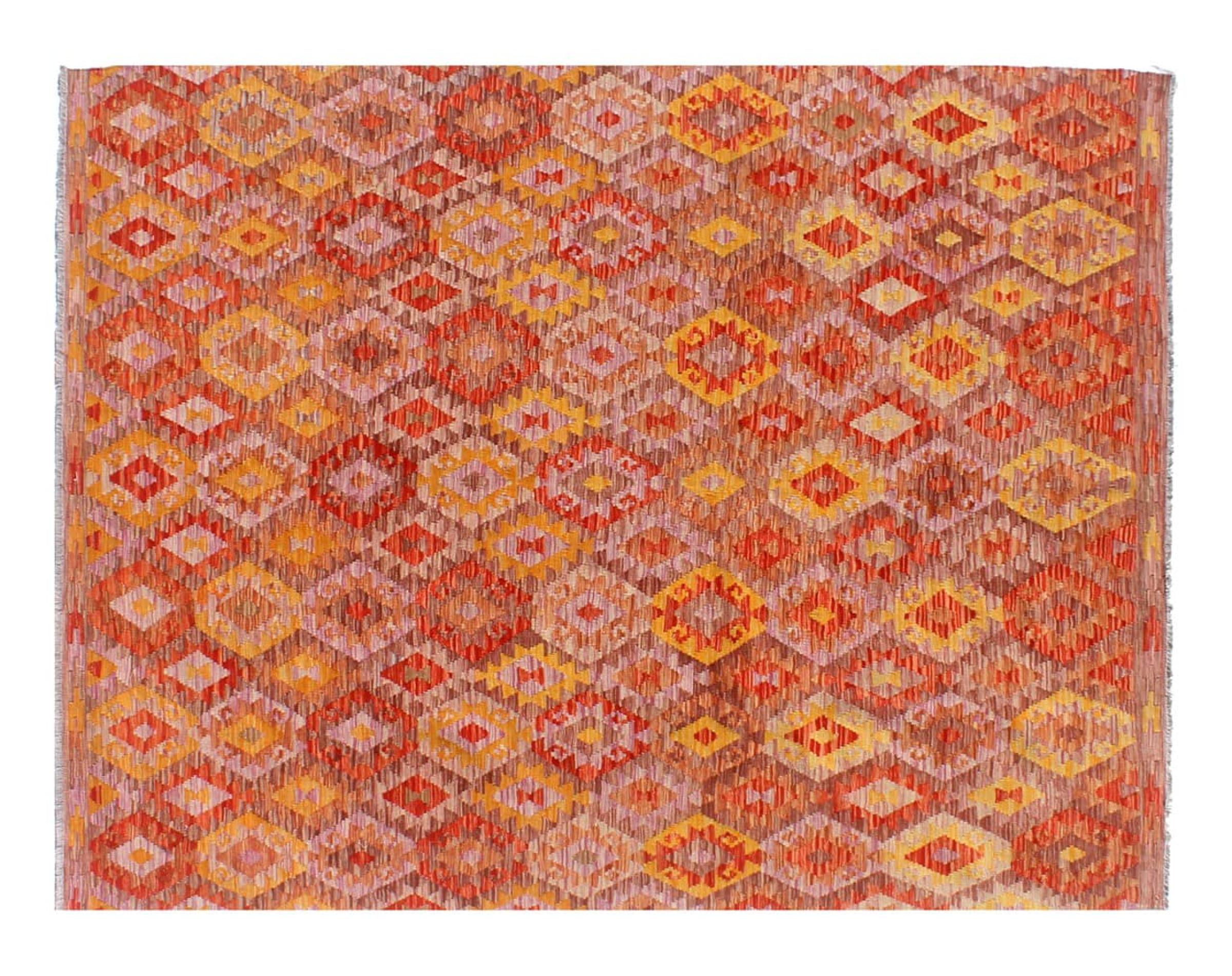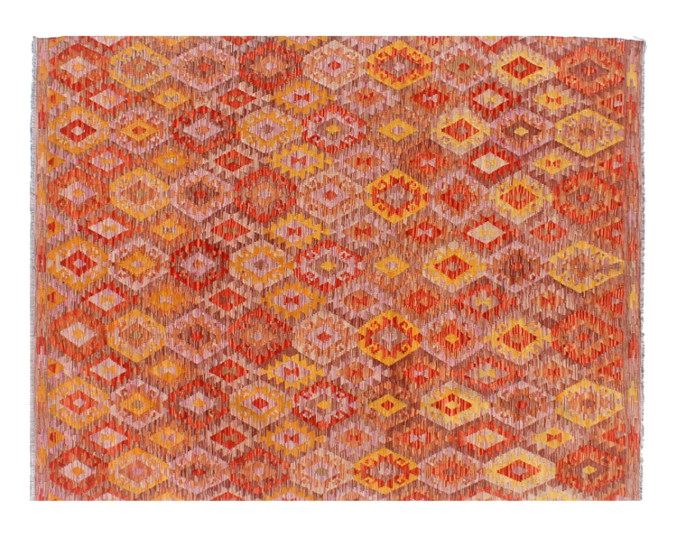 These Kilim rugs have a significant difference from hand-knotted rugs—they are handwoven. As a result, they do not have a high pile of wool and are often flatter and rougher than knotted wool rugs. Their construction is less intricate, making them generally much more affordable. Additionally, Kilim rugs are much lighter and can be laid out on either side. Handwoven Kilims originally come from what was once Persia and are now also widely produced in Afghanistan. They typically feature simple, straight-line patterns, which are characteristic of their weaving technique.