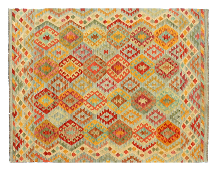 These Kilim rugs have a significant difference from hand-knotted rugs—they are handwoven. As a result, they do not have a high pile of wool and are often flatter and rougher than knotted wool rugs. Their construction is less intricate, making them generally much more affordable. Additionally, Kilim rugs are much lighter and can be laid out on either side. Handwoven Kilims originally come from what was once Persia and are now also widely produced in Afghanistan. They typically feature simple, straight-line patterns, which are characteristic of their weaving technique.