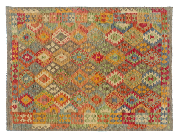 This Kilim Afghan rug has beautiful colors. It is handmade from fine wool. These patterns are traditional design elements that have already been used centuries ago. This particular kilim has been woven by hand in Afghanistan, a country with a long history in weaving and knotting rugs. The rug is robust and can be laid out on both sides.