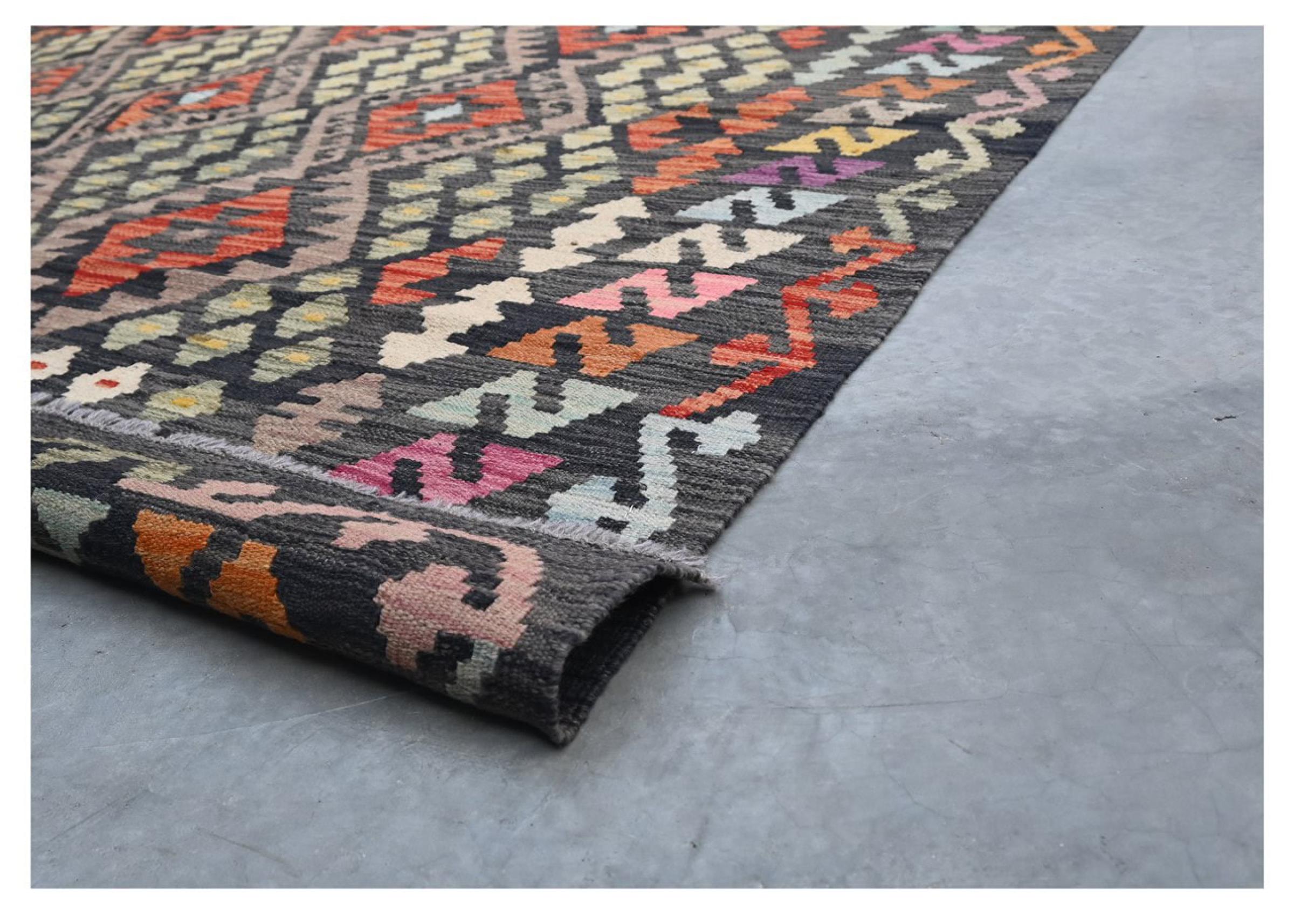 These Kilim rugs have a significant difference from hand-knotted rugs—they are handwoven. As a result, they do not have a high pile of wool and are often flatter and rougher than knotted wool rugs. Their construction is less intricate, making them generally much more affordable. Additionally, Kilim rugs are much lighter and can be laid out on either side. Handwoven Kilims originally come from what was once Persia and are now also widely produced in Afghanistan. They typically feature simple, straight-line patterns, which are characteristic of their weaving technique.