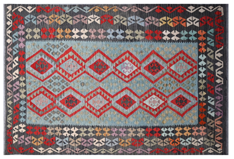 These Kilim rugs have a significant difference from hand-knotted rugs—they are handwoven. As a result, they do not have a high pile of wool and are often flatter and rougher than knotted wool rugs. Their construction is less intricate, making them generally much more affordable. Additionally, Kilim rugs are much lighter and can be laid out on either side. Handwoven Kilims originally come from what was once Persia and are now also widely produced in Afghanistan. They typically feature simple, straight-line patterns, which are characteristic of their weaving technique.