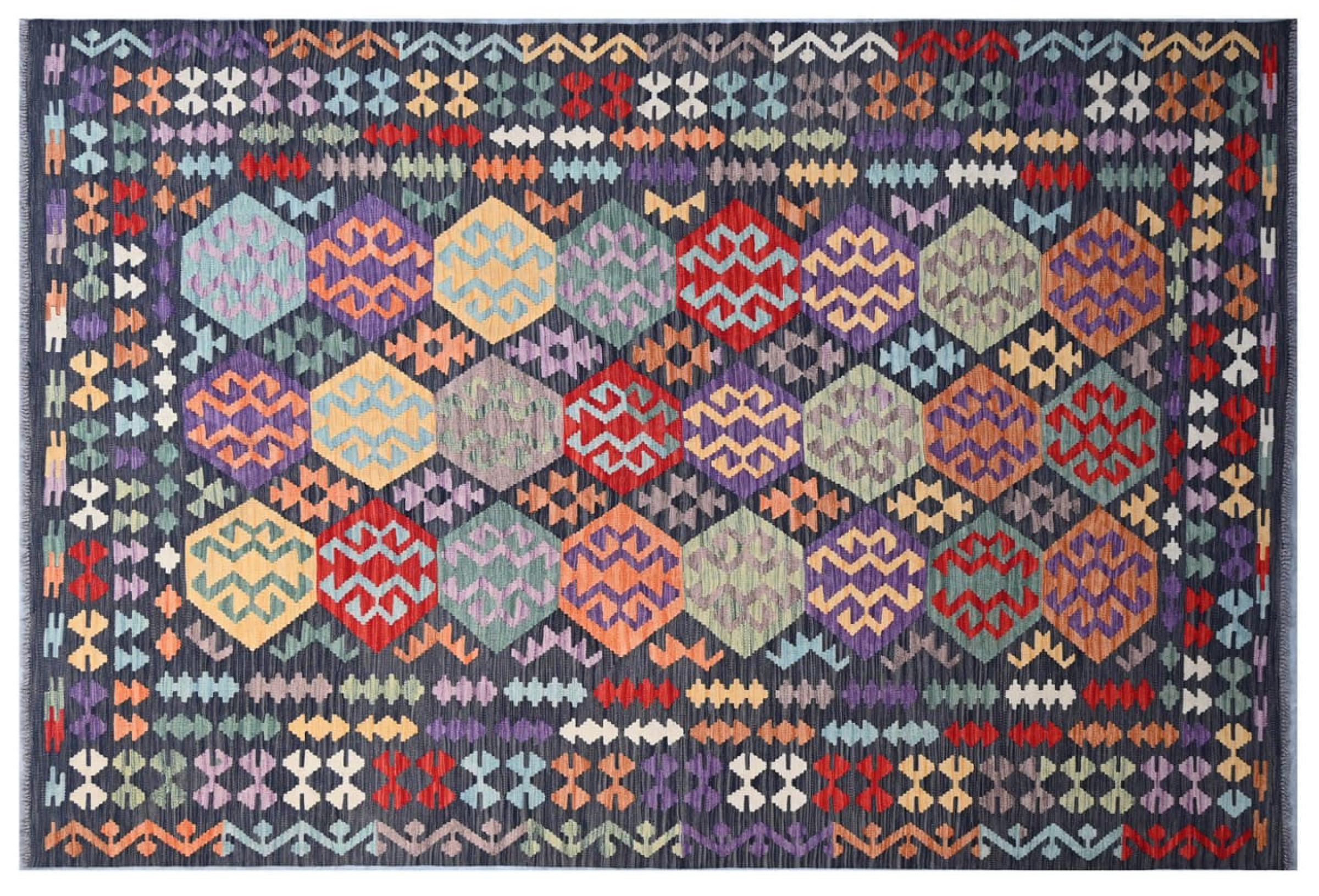 This Kilim Afghan rug has beautiful colors. It is handmade from fine wool. These patterns are traditional design elements that have already been used centuries ago. This particular kilim has been woven by hand in Afghanistan, a country with a long history in weaving and knotting rugs. The rug is robust and can be laid out on both sides.