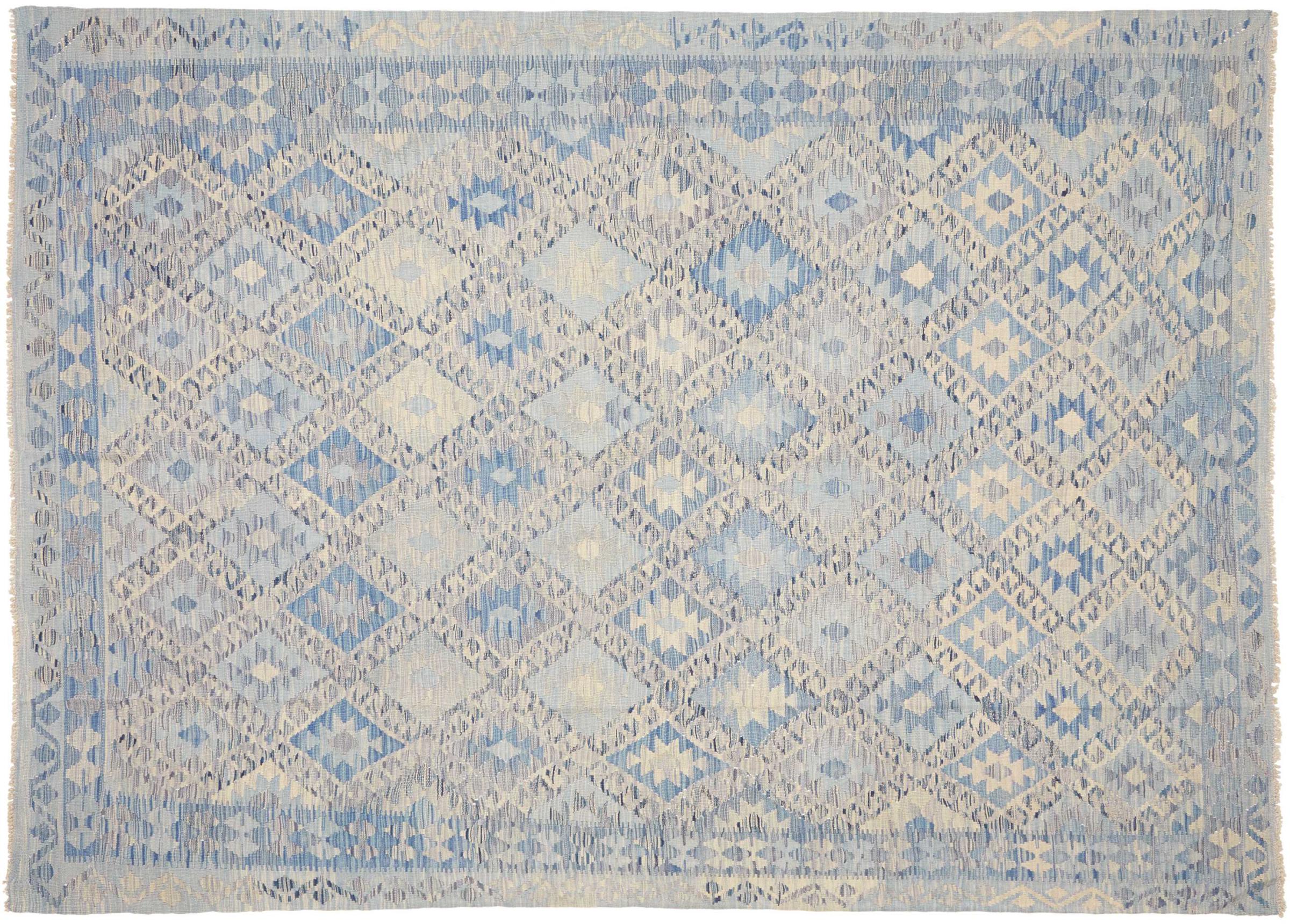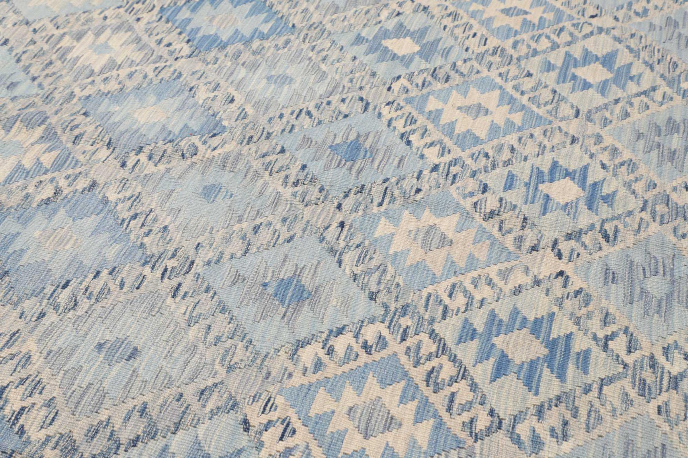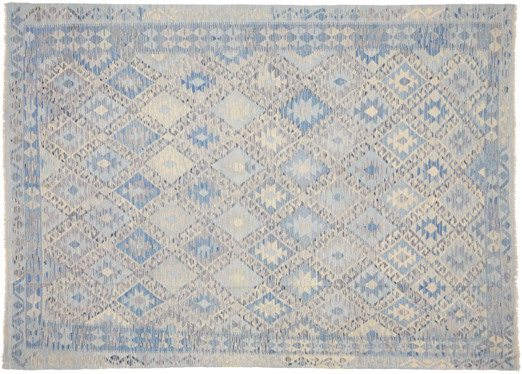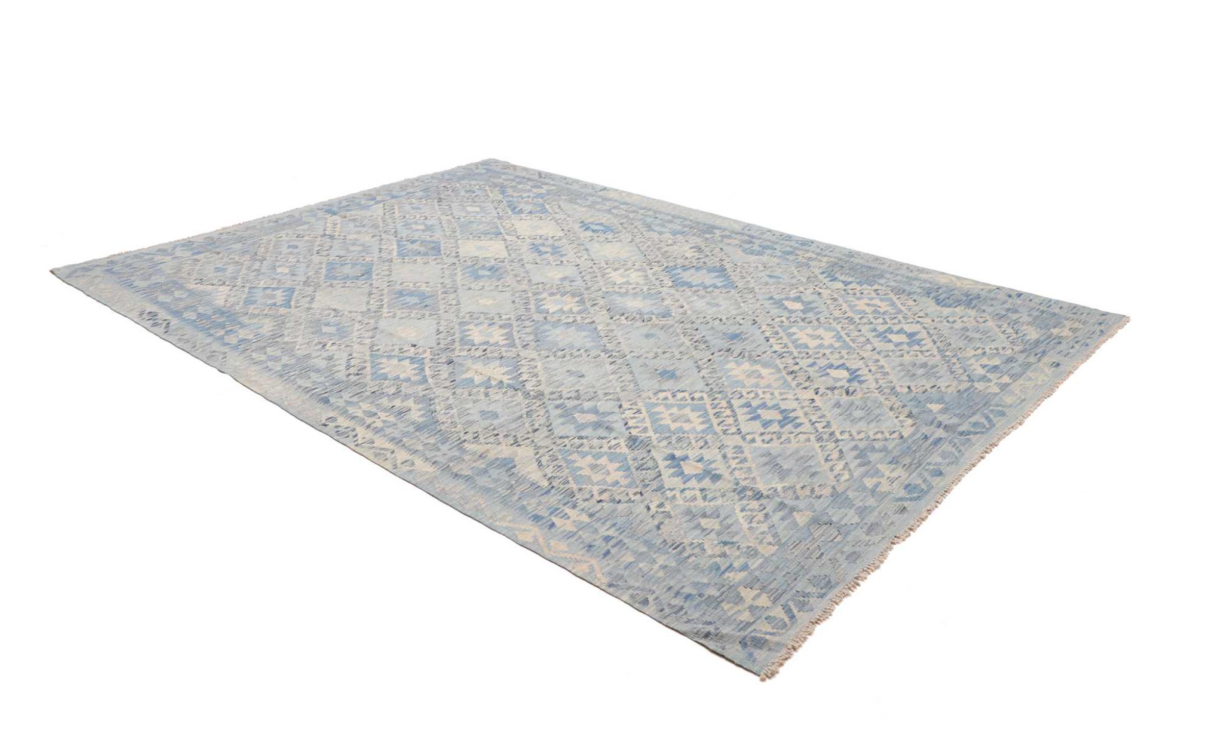 These Kilim rugs have a significant difference from hand-knotted rugs—they are handwoven. As a result, they do not have a high pile of wool and are often flatter and rougher than knotted wool rugs. Their construction is less intricate, making them generally much more affordable. Additionally, Kilim rugs are much lighter and can be laid out on either side. Handwoven Kilims originally come from what was once Persia and are now also widely produced in Afghanistan. They typically feature simple, straight-line patterns, which are characteristic of their weaving technique.