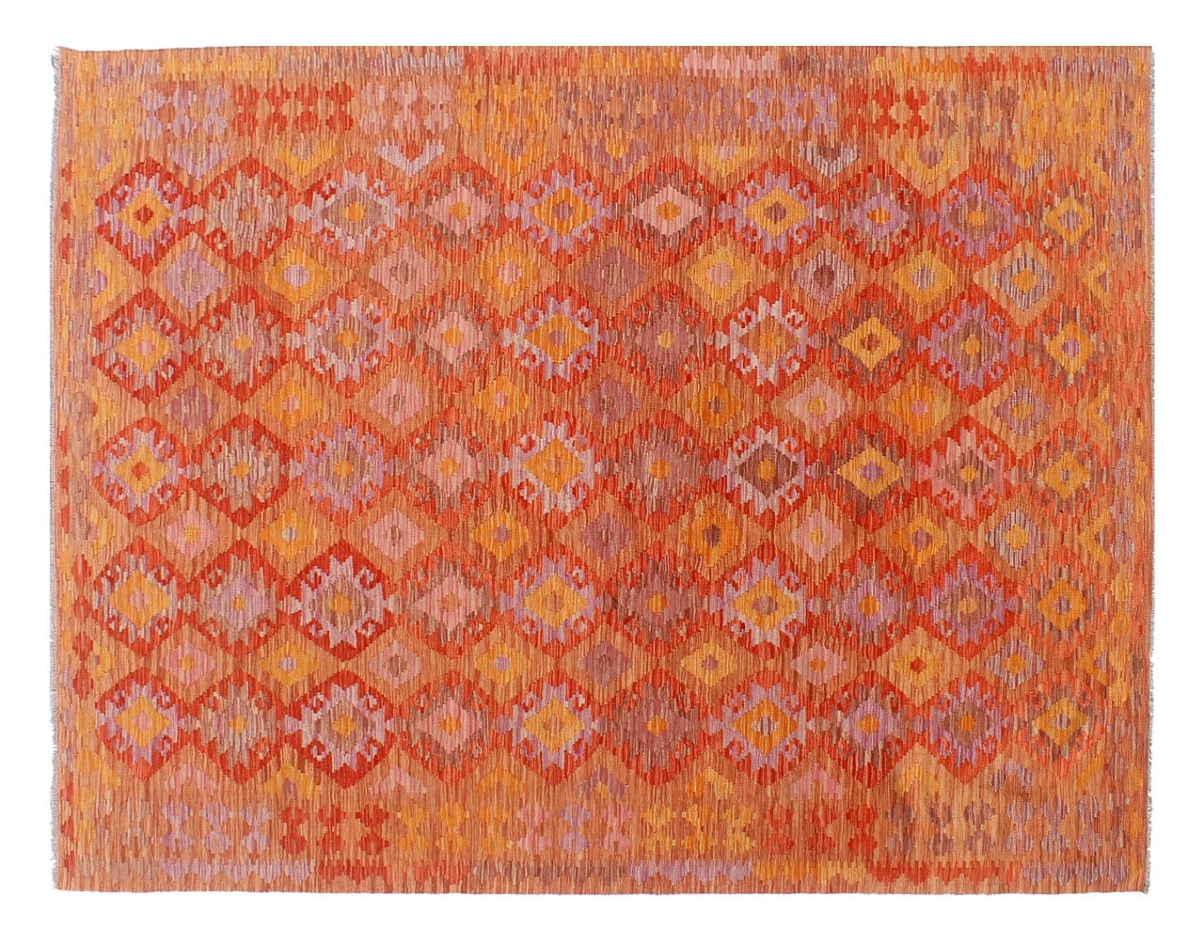 These Kilim rugs have a significant difference from hand-knotted rugs—they are handwoven. As a result, they do not have a high pile of wool and are often flatter and rougher than knotted wool rugs. Their construction is less intricate, making them generally much more affordable. Additionally, Kilim rugs are much lighter and can be laid out on either side. Handwoven Kilims originally come from what was once Persia and are now also widely produced in Afghanistan. They typically feature simple, straight-line patterns, which are characteristic of their weaving technique.