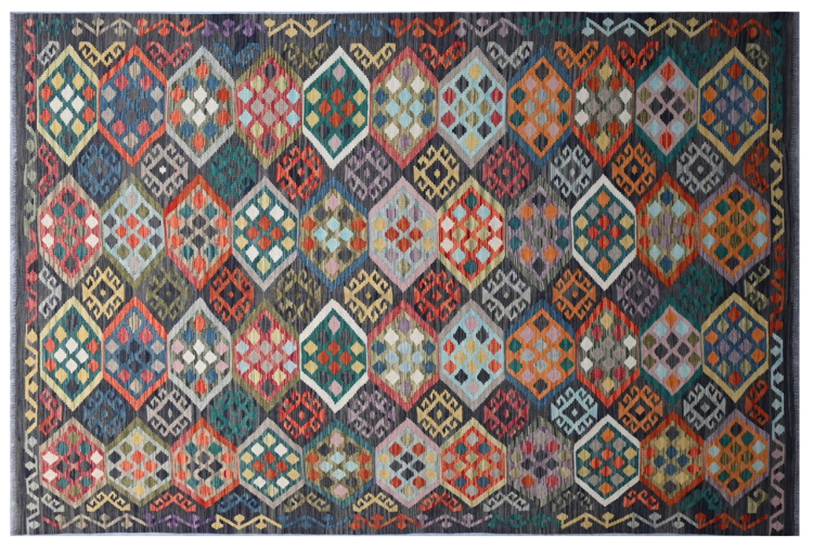 These Kilim rugs have a significant difference from hand-knotted rugs—they are handwoven. As a result, they do not have a high pile of wool and are often flatter and rougher than knotted wool rugs. Their construction is less intricate, making them generally much more affordable. Additionally, Kilim rugs are much lighter and can be laid out on either side. Handwoven Kilims originally come from what was once Persia and are now also widely produced in Afghanistan. They typically feature simple, straight-line patterns, which are characteristic of their weaving technique.