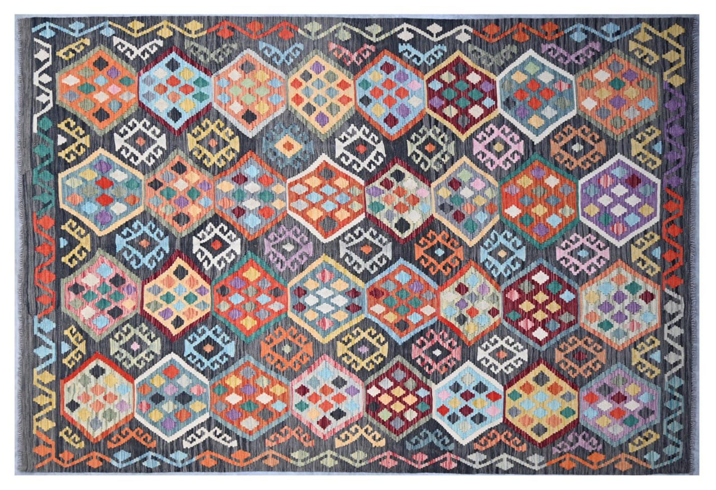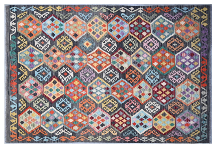 These Kilim rugs have a significant difference from hand-knotted rugs—they are handwoven. As a result, they do not have a high pile of wool and are often flatter and rougher than knotted wool rugs. Their construction is less intricate, making them generally much more affordable. Additionally, Kilim rugs are much lighter and can be laid out on either side. Handwoven Kilims originally come from what was once Persia and are now also widely produced in Afghanistan. They typically feature simple, straight-line patterns, which are characteristic of their weaving technique.