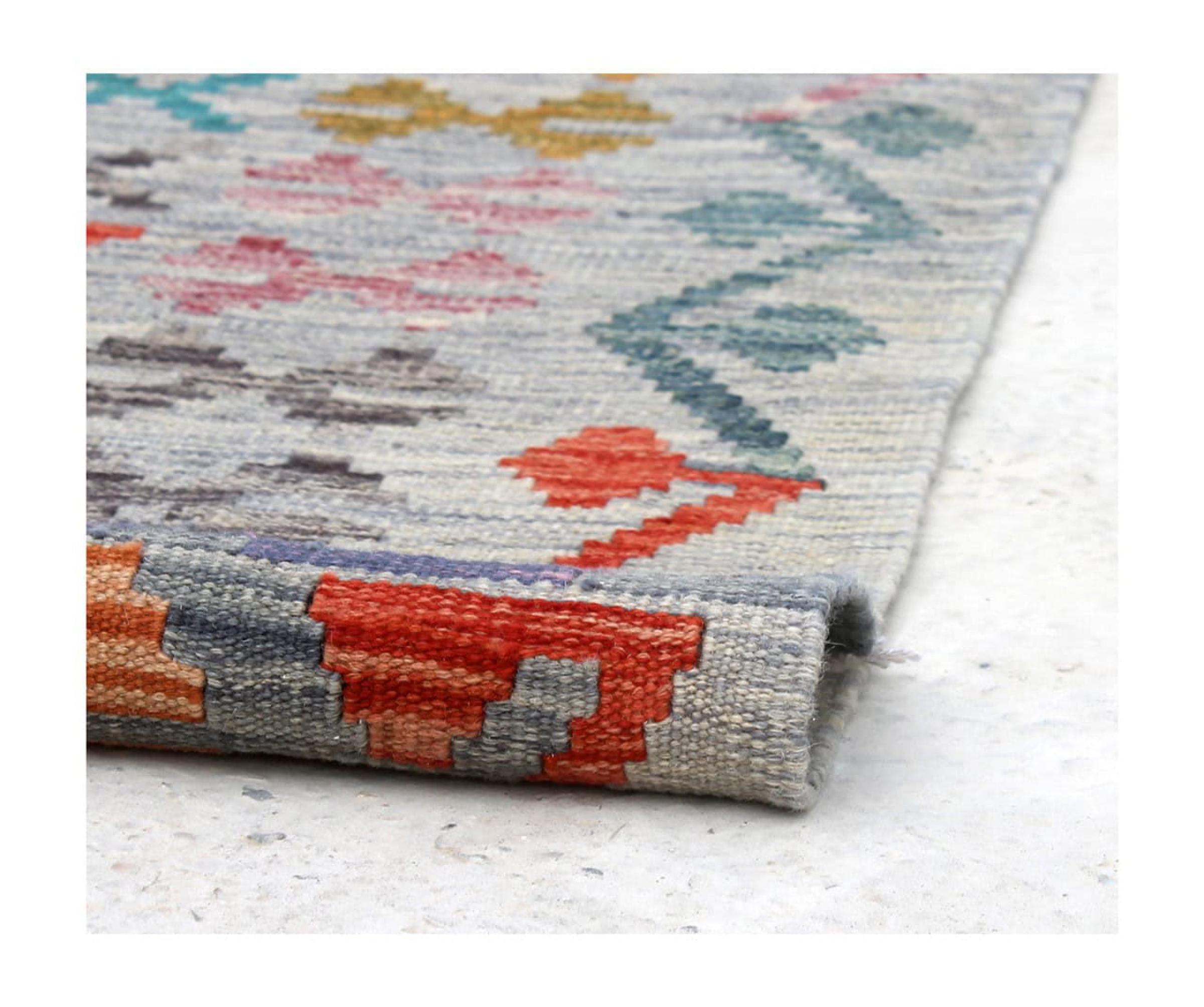 These Kilim rugs have a significant difference from hand-knotted rugs—they are handwoven. As a result, they do not have a high pile of wool and are often flatter and rougher than knotted wool rugs. Their construction is less intricate, making them generally much more affordable. Additionally, Kilim rugs are much lighter and can be laid out on either side. Handwoven Kilims originally come from what was once Persia and are now also widely produced in Afghanistan. They typically feature simple, straight-line patterns, which are characteristic of their weaving technique.