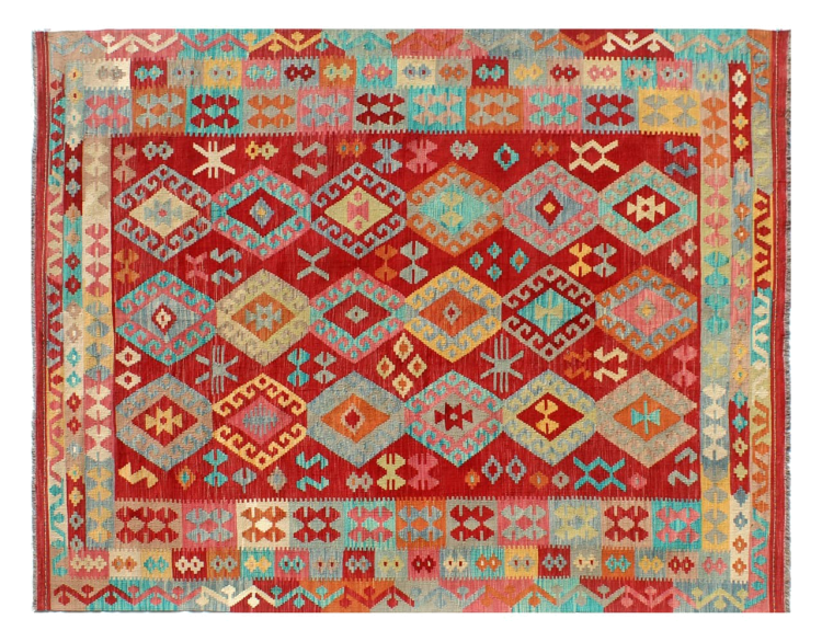 These Kilim rugs have a significant difference from hand-knotted rugs—they are handwoven. As a result, they do not have a high pile of wool and are often flatter and rougher than knotted wool rugs. Their construction is less intricate, making them generally much more affordable. Additionally, Kilim rugs are much lighter and can be laid out on either side. Handwoven Kilims originally come from what was once Persia and are now also widely produced in Afghanistan. They typically feature simple, straight-line patterns, which are characteristic of their weaving technique.