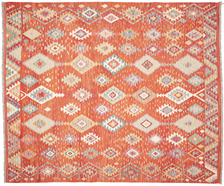 Rug ID: 306608001578264 Size: 9'11"x8'1" ft Thickness: ap. 0.12 in Knot density: 82 - 103 / square inch Manufacturing: Woven by hand Pile: Handspun wool Warp: Cotton Origin: Afghanistan Age: New Weight: ap. 24 lb In stock: Unique - Only 1 in stock