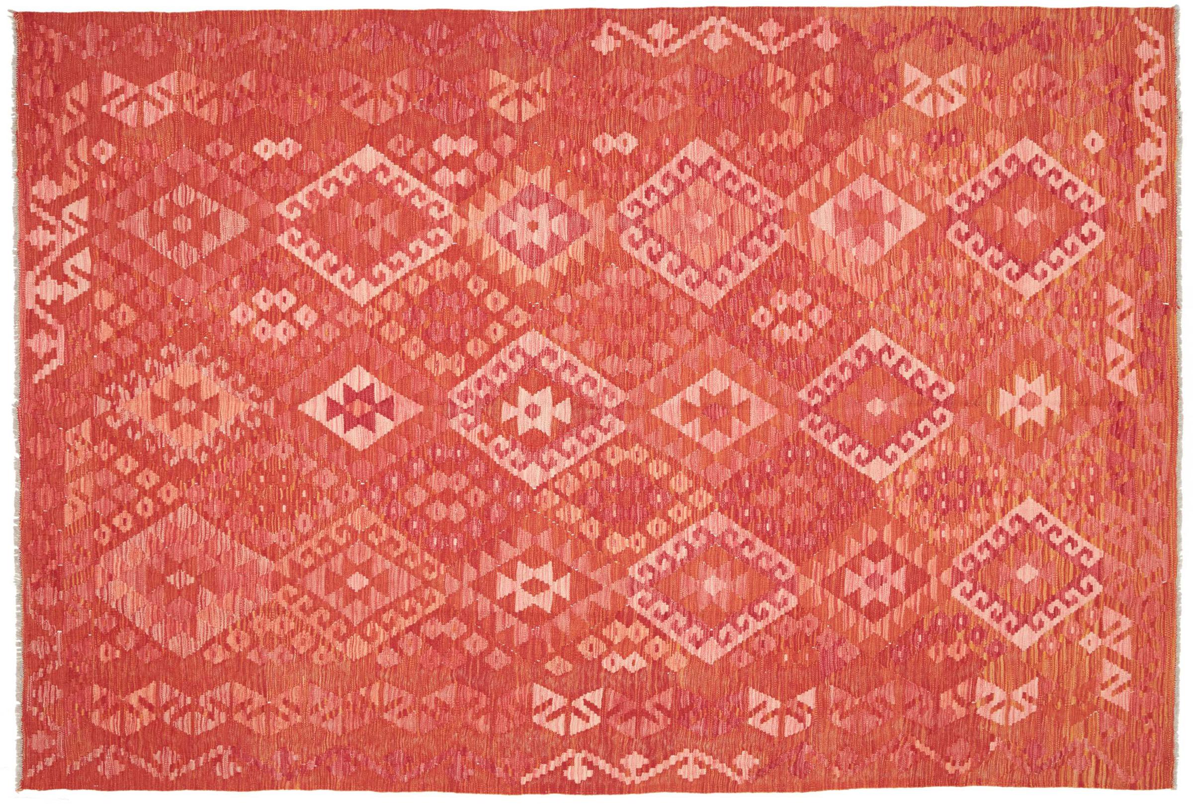 This Kilim Afghan rug has beautiful colors. It is handmade from fine wool. These patterns are traditional design elements that have already been used centuries ago. This particular kilim has been woven by hand in Afghanistan, a country with a long history in weaving and knotting rugs. The rug is robust and can be laid out on both sides.