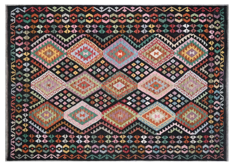 These Kilim rugs have a significant difference from hand-knotted rugs—they are handwoven. As a result, they do not have a high pile of wool and are often flatter and rougher than knotted wool rugs. Their construction is less intricate, making them generally much more affordable. Additionally, Kilim rugs are much lighter and can be laid out on either side. Handwoven Kilims originally come from what was once Persia and are now also widely produced in Afghanistan. They typically feature simple, straight-line patterns, which are characteristic of their weaving technique.