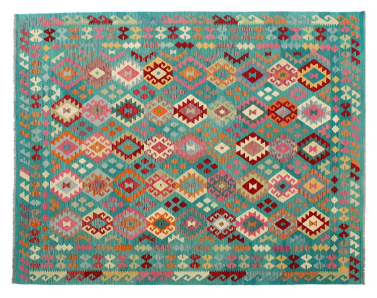 These Kilim rugs have a significant difference from hand-knotted rugs—they are handwoven. As a result, they do not have a high pile of wool and are often flatter and rougher than knotted wool rugs. Their construction is less intricate, making them generally much more affordable. Additionally, Kilim rugs are much lighter and can be laid out on either side. Handwoven Kilims originally come from what was once Persia and are now also widely produced in Afghanistan. They typically feature simple, straight-line patterns, which are characteristic of their weaving technique.