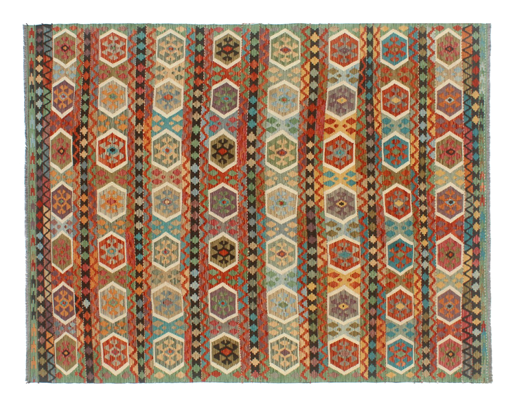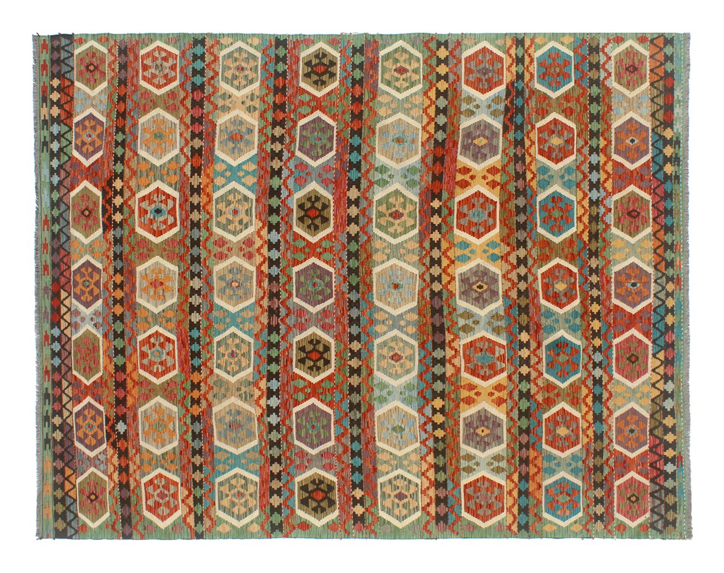 These Kilim rugs have a significant difference from hand-knotted rugs—they are handwoven. As a result, they do not have a high pile of wool and are often flatter and rougher than knotted wool rugs. Their construction is less intricate, making them generally much more affordable. Additionally, Kilim rugs are much lighter and can be laid out on either side. Handwoven Kilims originally come from what was once Persia and are now also widely produced in Afghanistan. They typically feature simple, straight-line patterns, which are characteristic of their weaving technique.