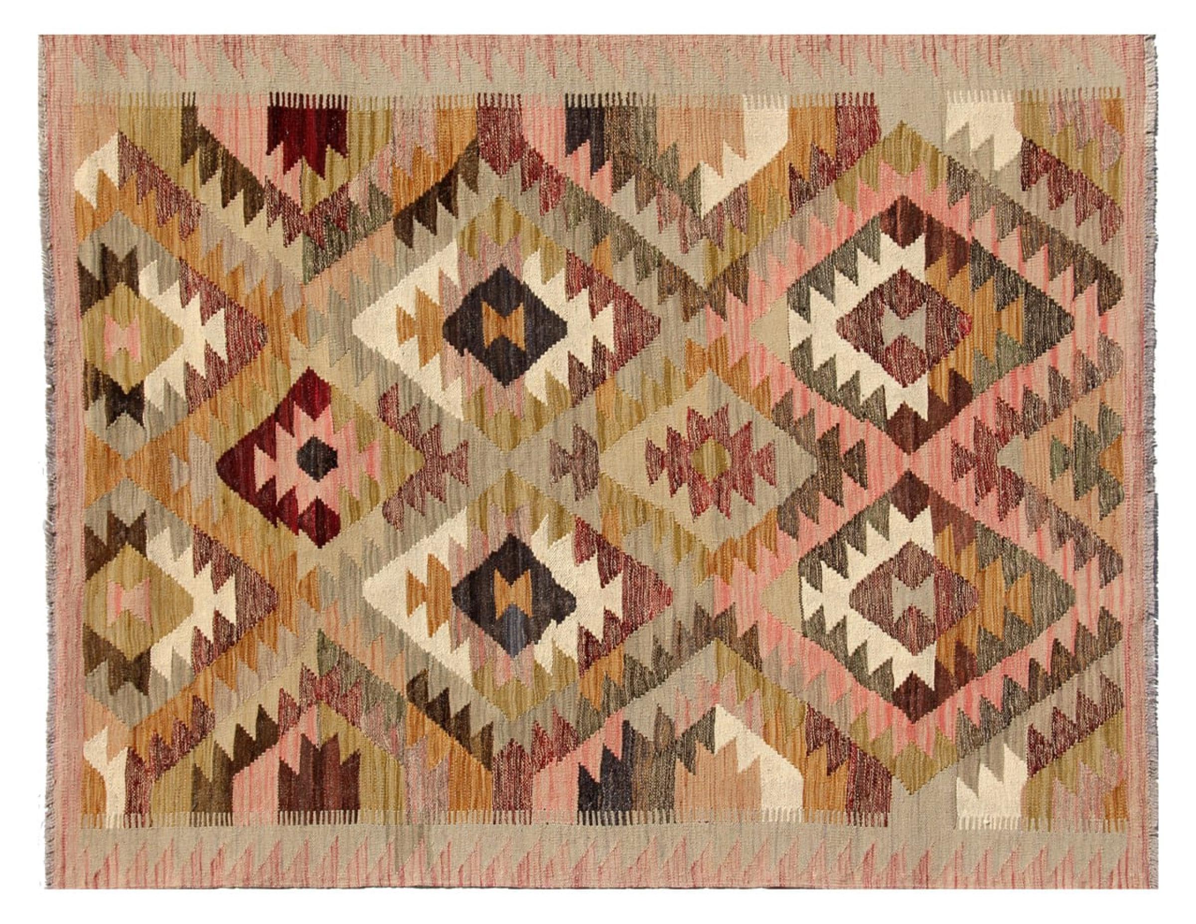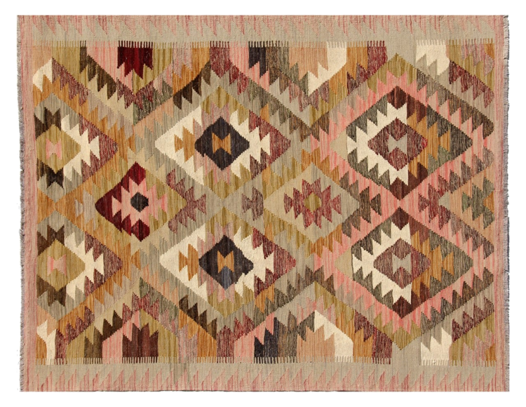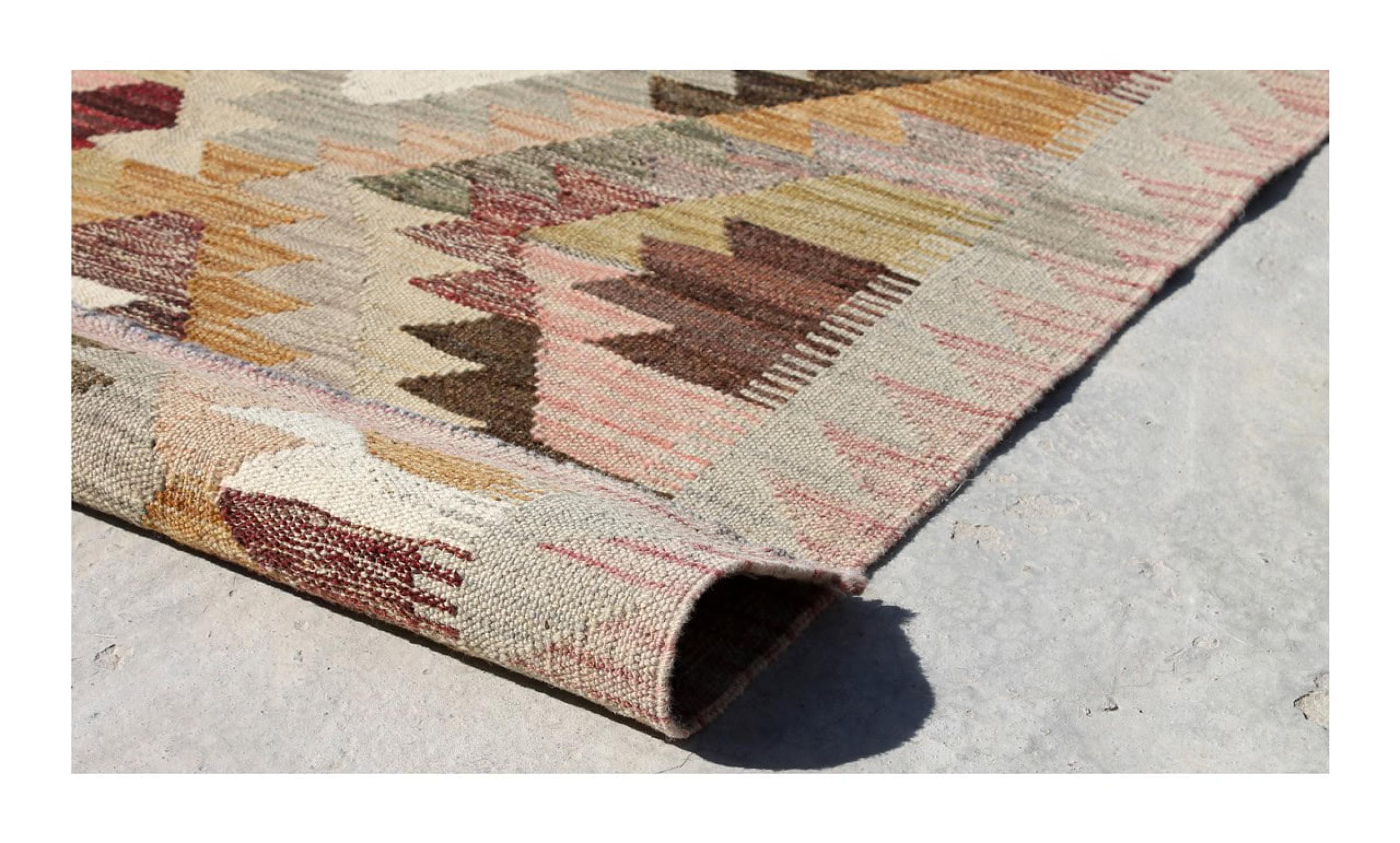 These Kilim rugs have a significant difference from hand-knotted rugs—they are handwoven. As a result, they do not have a high pile of wool and are often flatter and rougher than knotted wool rugs. Their construction is less intricate, making them generally much more affordable. Additionally, Kilim rugs are much lighter and can be laid out on either side. Handwoven Kilims originally come from what was once Persia and are now also widely produced in Afghanistan. They typically feature simple, straight-line patterns, which are characteristic of their weaving technique.