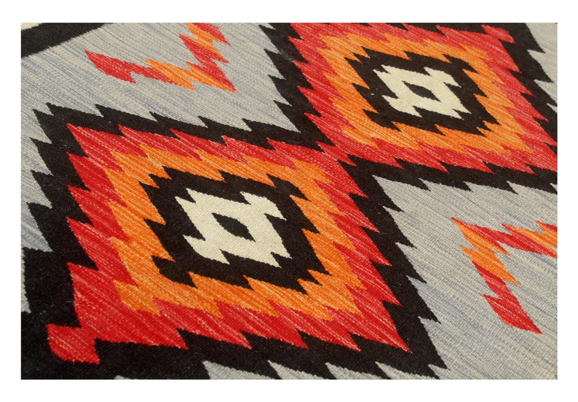 These Kilim rugs have a significant difference from hand-knotted rugs—they are handwoven. As a result, they do not have a high pile of wool and are often flatter and rougher than knotted wool rugs. Their construction is less intricate, making them generally much more affordable. Additionally, Kilim rugs are much lighter and can be laid out on either side. Handwoven Kilims originally come from what was once Persia and are now also widely produced in Afghanistan. They typically feature simple, straight-line patterns, which are characteristic of their weaving technique.