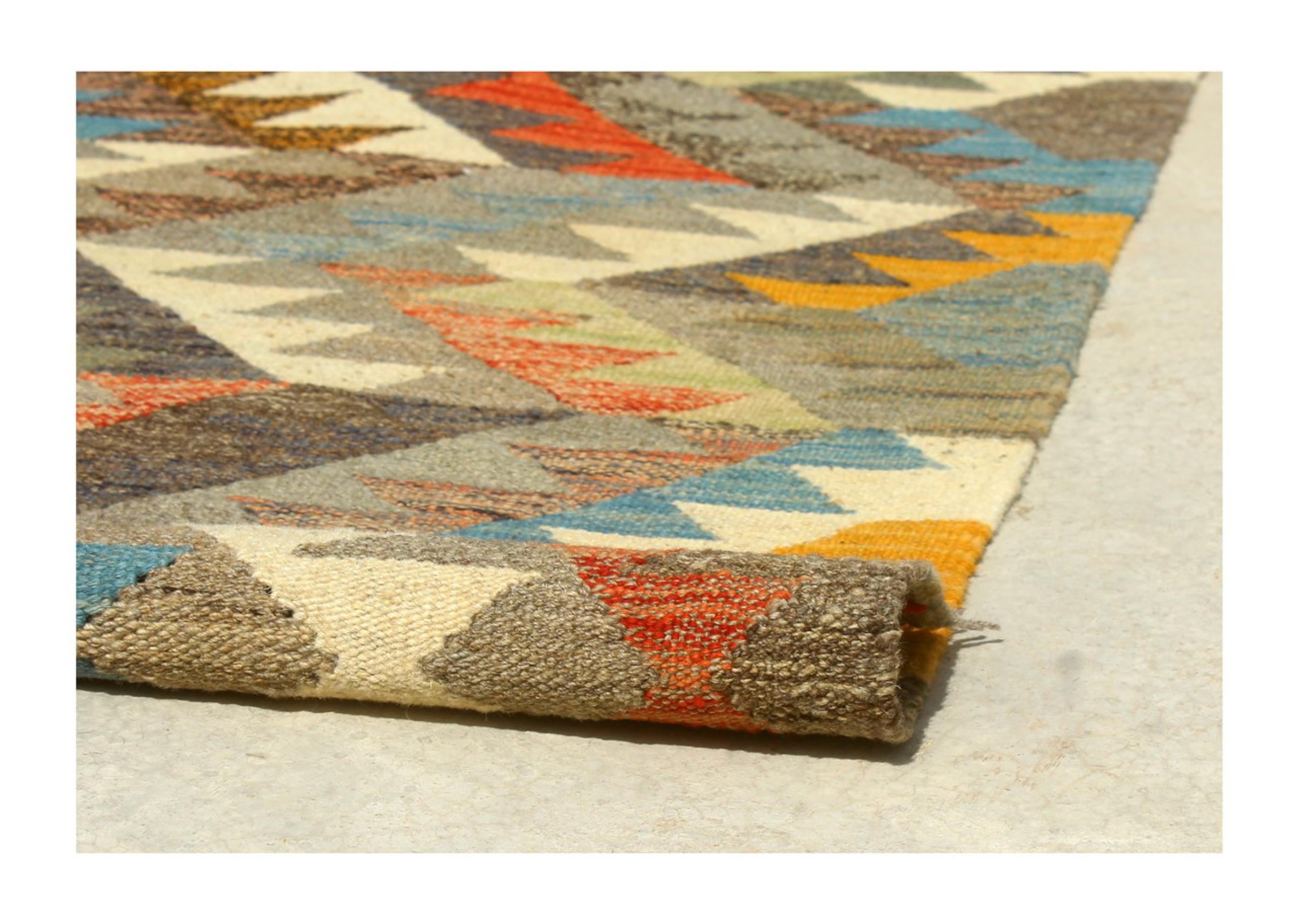 These Kilim rugs have a significant difference from hand-knotted rugs—they are handwoven. As a result, they do not have a high pile of wool and are often flatter and rougher than knotted wool rugs. Their construction is less intricate, making them generally much more affordable. Additionally, Kilim rugs are much lighter and can be laid out on either side. Handwoven Kilims originally come from what was once Persia and are now also widely produced in Afghanistan. They typically feature simple, straight-line patterns, which are characteristic of their weaving technique.