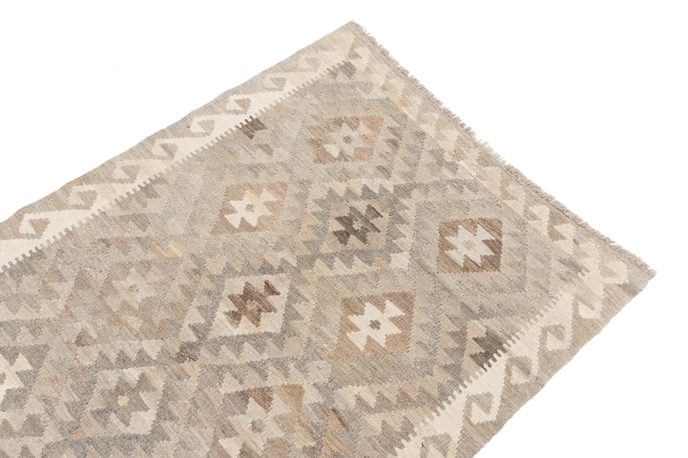 These Kilim rugs have a significant difference from hand-knotted rugs—they are handwoven. As a result, they do not have a high pile of wool and are often flatter and rougher than knotted wool rugs. Their construction is less intricate, making them generally much more affordable. Additionally, Kilim rugs are much lighter and can be laid out on either side. Handwoven Kilims originally come from what was once Persia and are now also widely produced in Afghanistan. They typically feature simple, straight-line patterns, which are characteristic of their weaving technique.