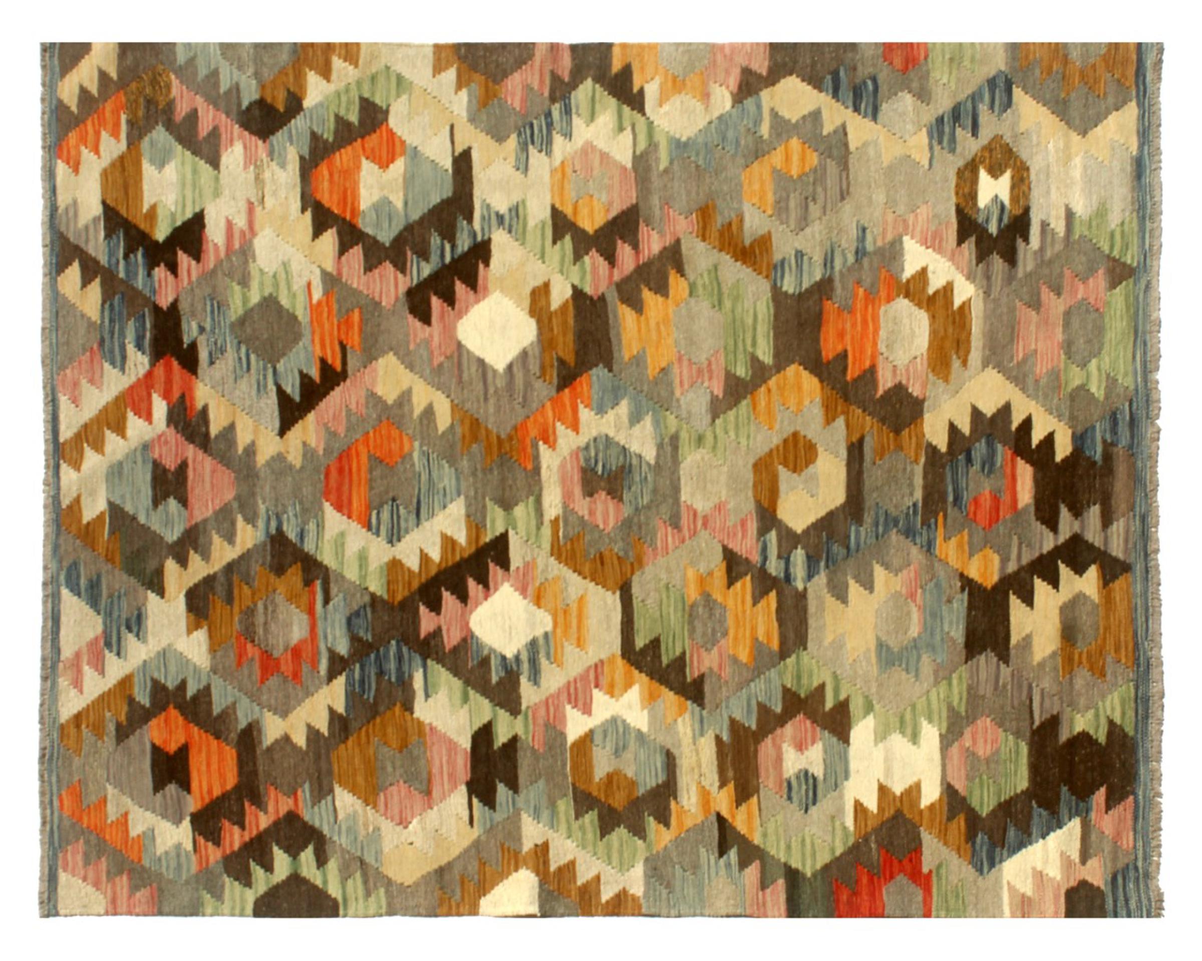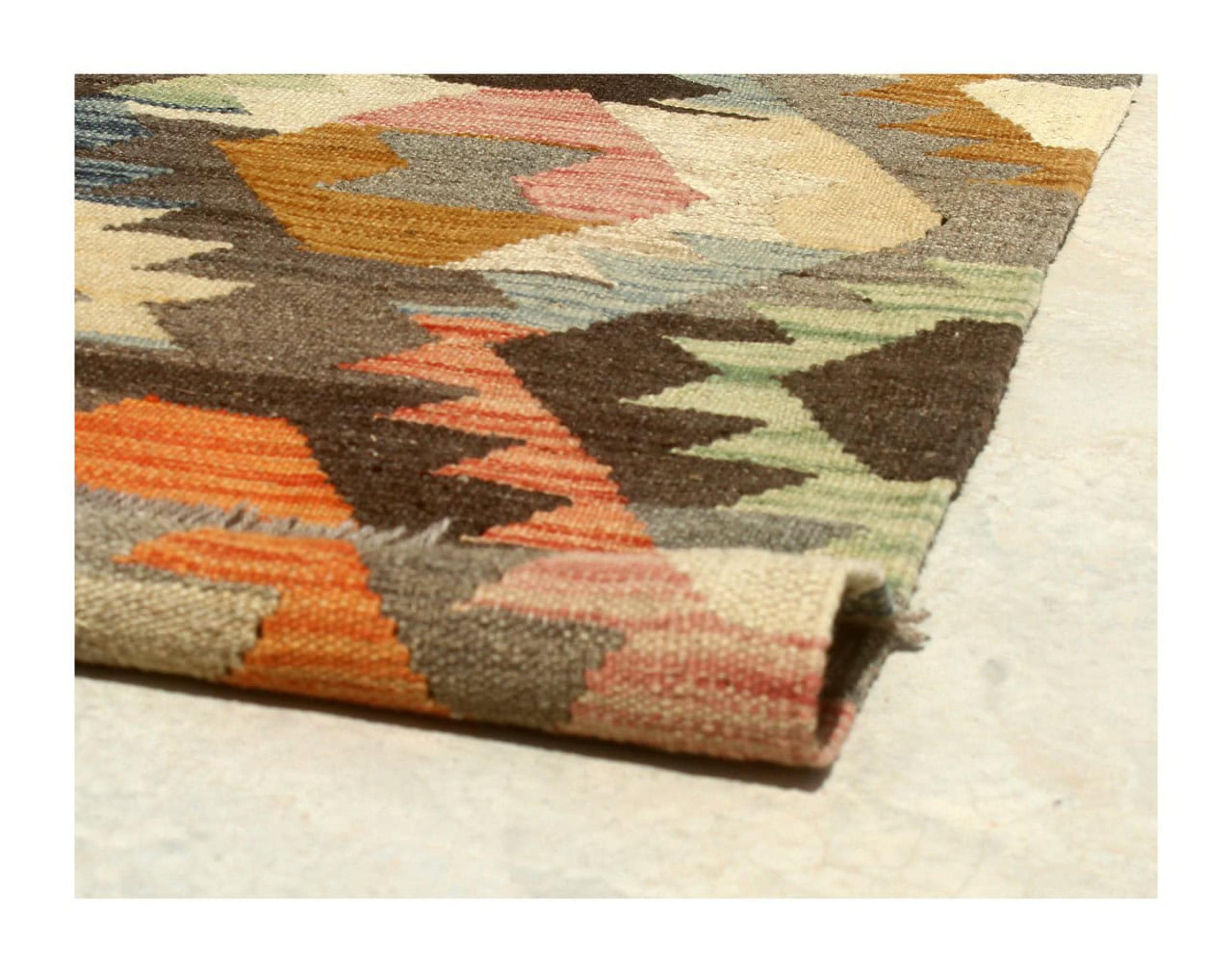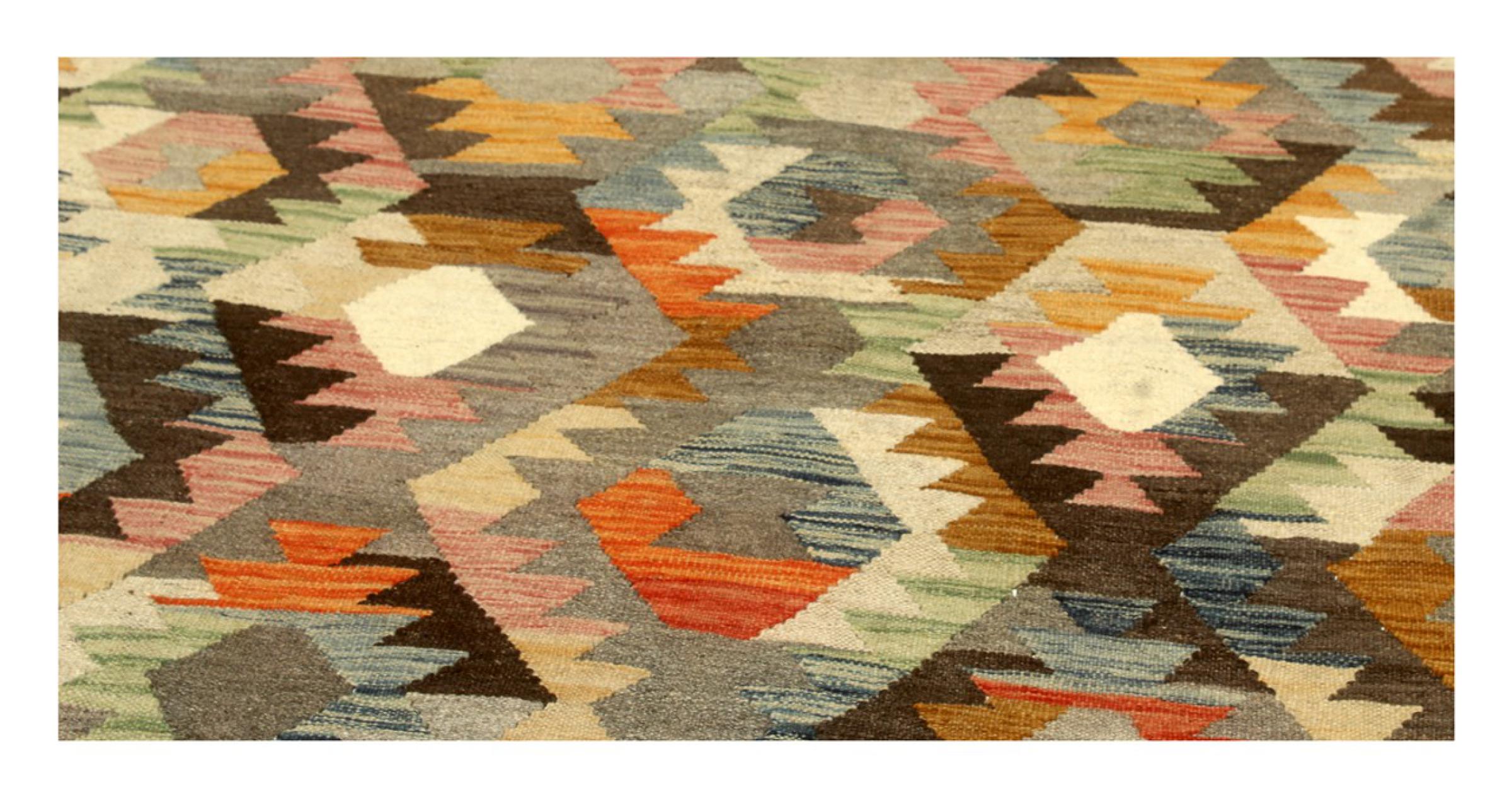 These Kilim rugs have a significant difference from hand-knotted rugs—they are handwoven. As a result, they do not have a high pile of wool and are often flatter and rougher than knotted wool rugs. Their construction is less intricate, making them generally much more affordable. Additionally, Kilim rugs are much lighter and can be laid out on either side. Handwoven Kilims originally come from what was once Persia and are now also widely produced in Afghanistan. They typically feature simple, straight-line patterns, which are characteristic of their weaving technique.