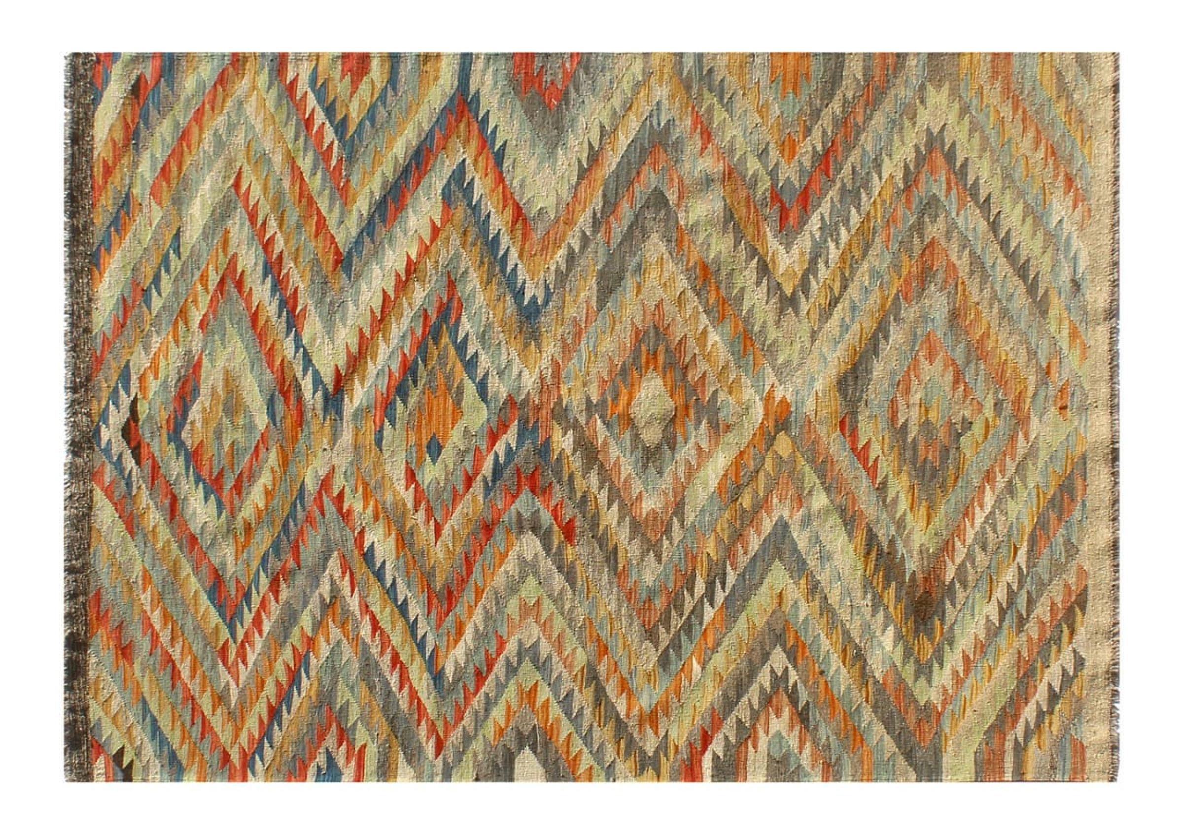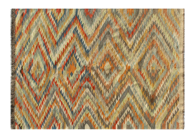 These Kilim rugs have a significant difference from hand-knotted rugs—they are handwoven. As a result, they do not have a high pile of wool and are often flatter and rougher than knotted wool rugs. Their construction is less intricate, making them generally much more affordable. Additionally, Kilim rugs are much lighter and can be laid out on either side. Handwoven Kilims originally come from what was once Persia and are now also widely produced in Afghanistan. They typically feature simple, straight-line patterns, which are characteristic of their weaving technique.
