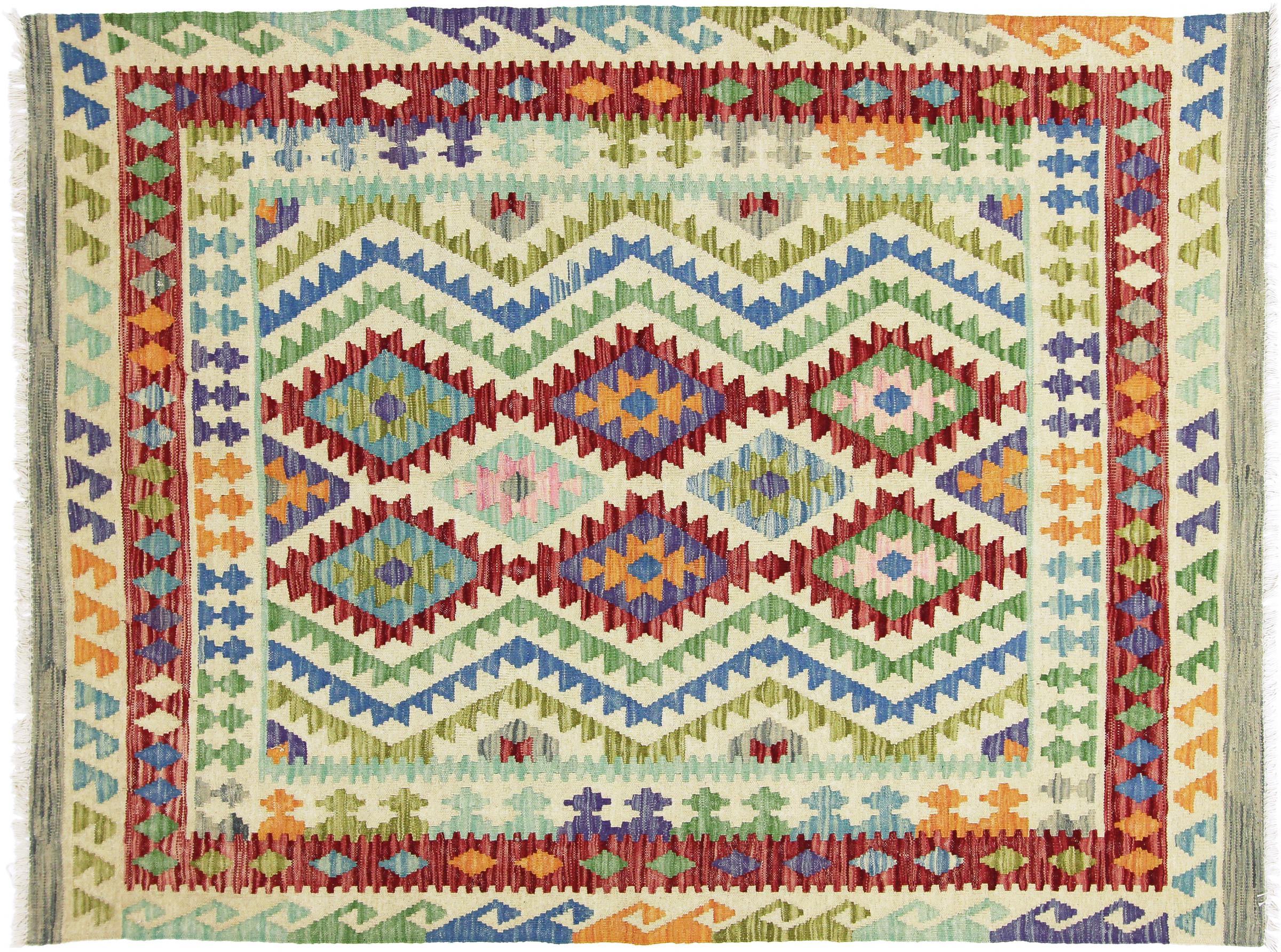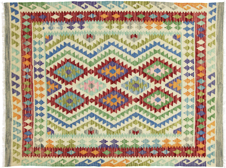 Rug ID: 73595004025589 Size: 6'7"x4'11" ft Thickness: ap. 0.12 in Manufacturing: Woven by hand Pile: Sheep wool Warp: Sheep wool Origin: Afghanistan Age: New Weight: ap. 11 lb Also know as Kilim, Qilim, Chilim, Afgan, Afghán In stock: Unique