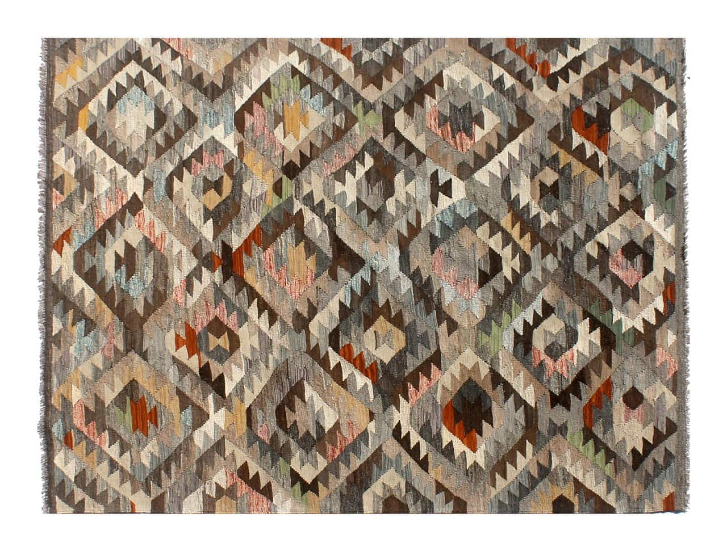 Rug ID: 30530300943148 Size: 6'7"x5'4" ft Thickness: ap. 0.12 in Manufacturing: Woven by hand Pile: Handspun wool Warp: Sheep wool Origin: Afghanistan Age: New Weight: ap. 11 lb Also know as Kilim, Qilim, Chilim, Afgan, Afghán In stock: Unique - Only 1 in stock