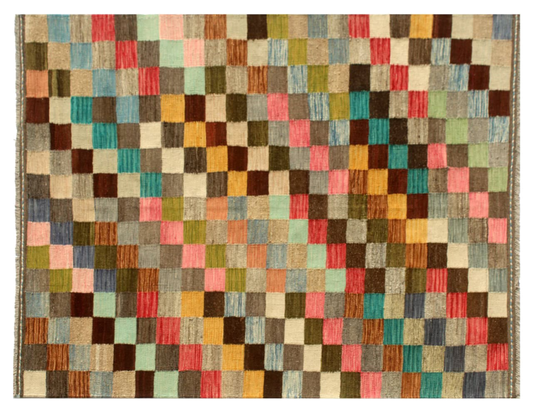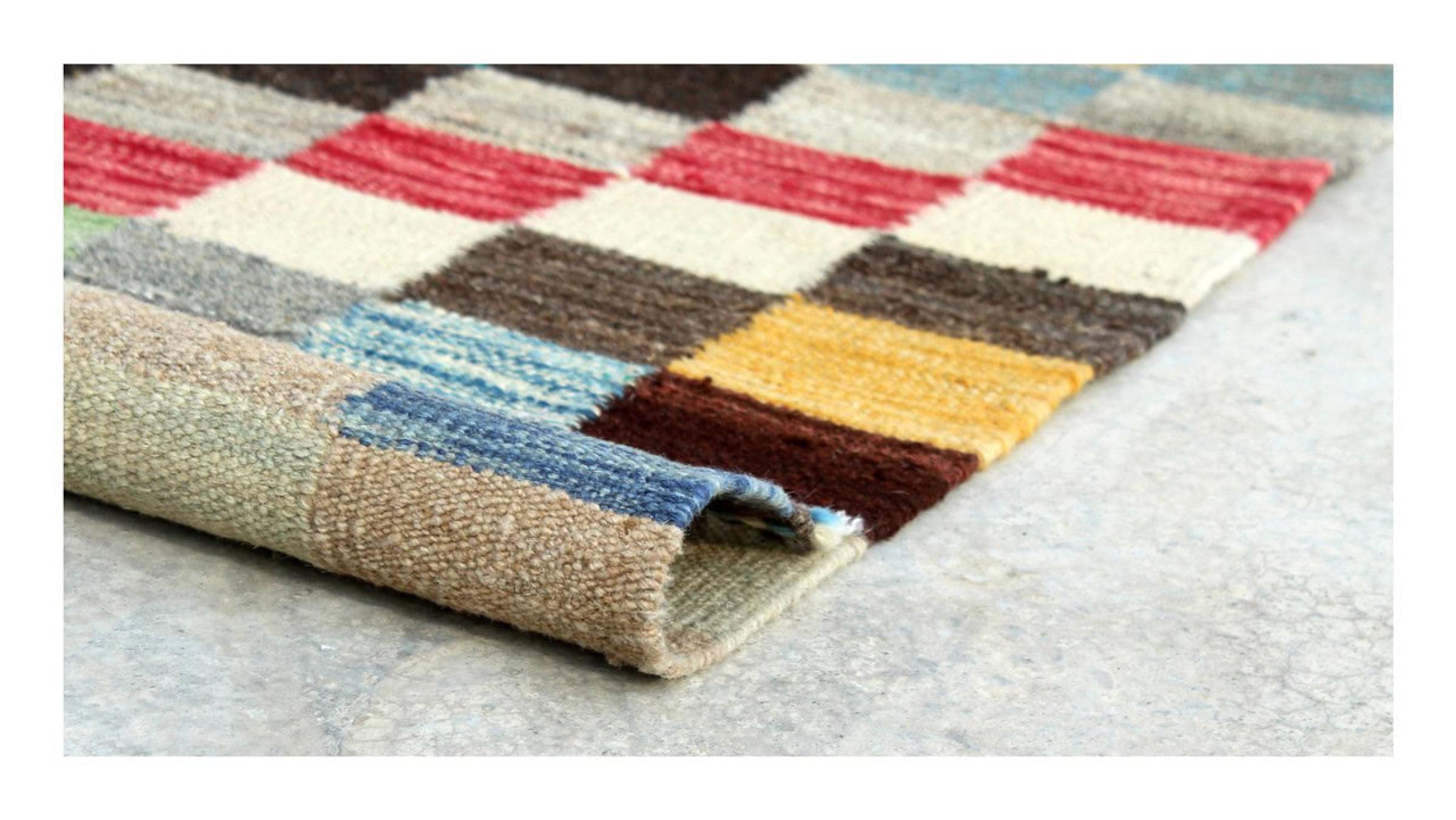 This rug was made as a flat weave by hand on a loom. Flatweave is the term used to describe rugs that have no pile. As the name promises, these rugs are woven and not knotted. This results in a flat rug with a structured surface. Flatweaves are not as soft and usually thinner than knotted rugs. At the same time they are much less complex to manufacture and can usually be laid out from both sides (front and back). Their patterns are usually geometric, which is determined by the fabric.
