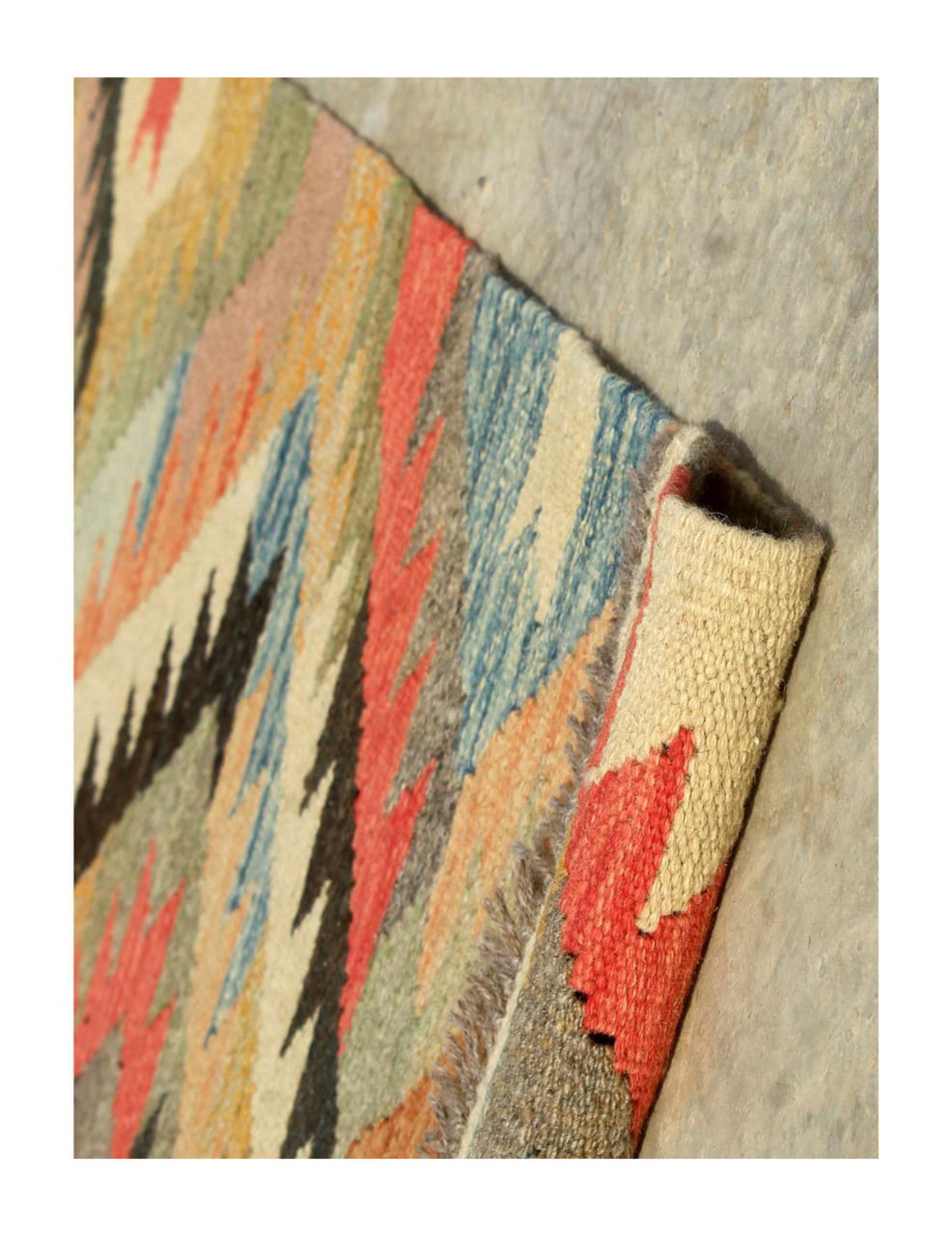 Rug ID: 30453000757142 Size: 6'8"x5'0" ft Thickness: ap. 0.12 in Manufacturing: Woven by hand Pile: Handspun wool Warp: Sheep wool Origin: Afghanistan Age: New Weight: ap. 11 lb Also know as Kilim, Qilim, Chilim, Afgan, Afghán In stock: Unique - Only 1 in stock