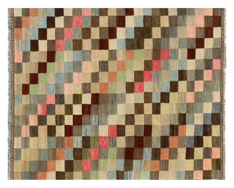 This rug was made as a flat weave by hand on a loom. Flatweave is the term used to describe rugs that have no pile. As the name promises, these rugs are woven and not knotted. This results in a flat rug with a structured surface. Flatweaves are not as soft and usually thinner than knotted rugs. At the same time they are much less complex to manufacture and can usually be laid out from both sides (front and back). Their patterns are usually geometric, which is determined by the fabric.