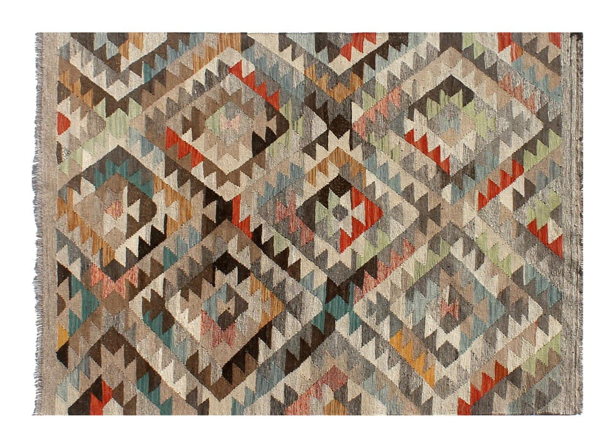 Rug ID: 305302007486483 Size: 6'9"x4'11" ft Thickness: ap. 0.12 in Manufacturing: Woven by hand Pile: Handspun wool Warp: Sheep wool Origin: Afghanistan Age: New Weight: ap. 11 lb Also know as Kilim, Qilim, Chilim, Afgan, Afghán In stock: Unique - Only 1 in stock