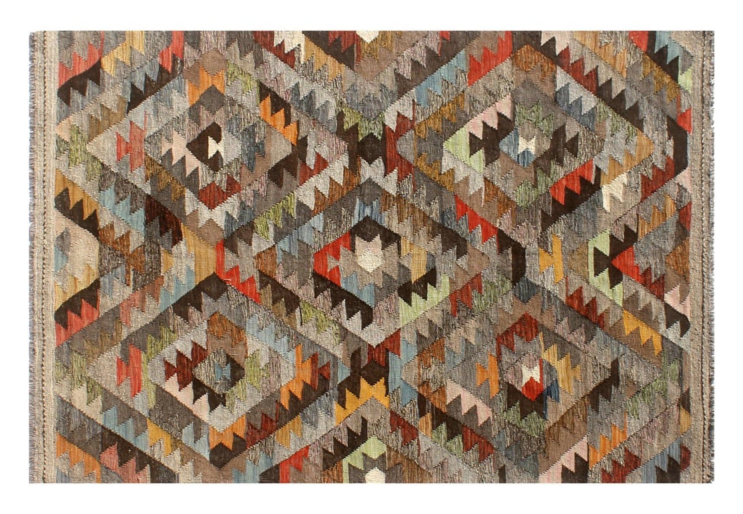 These Kilim rugs have a significant difference from hand-knotted rugs—they are handwoven. As a result, they do not have a high pile of wool and are often flatter and rougher than knotted wool rugs. Their construction is less intricate, making them generally much more affordable. Additionally, Kilim rugs are much lighter and can be laid out on either side. Handwoven Kilims originally come from what was once Persia and are now also widely produced in Afghanistan. They typically feature simple, straight-line patterns, which are characteristic of their weaving technique.