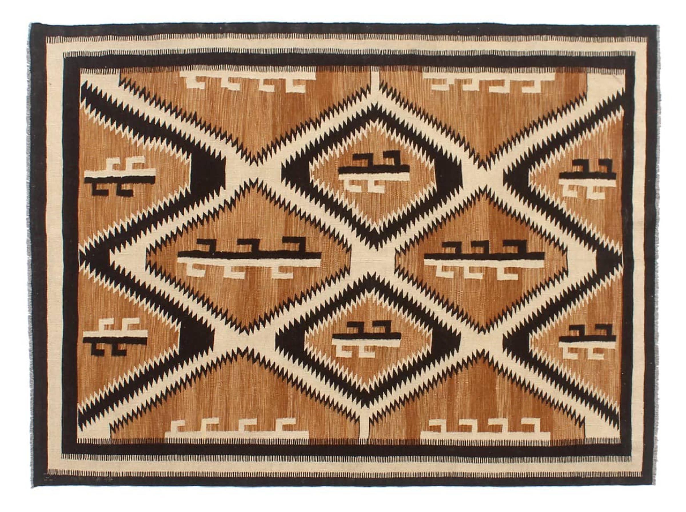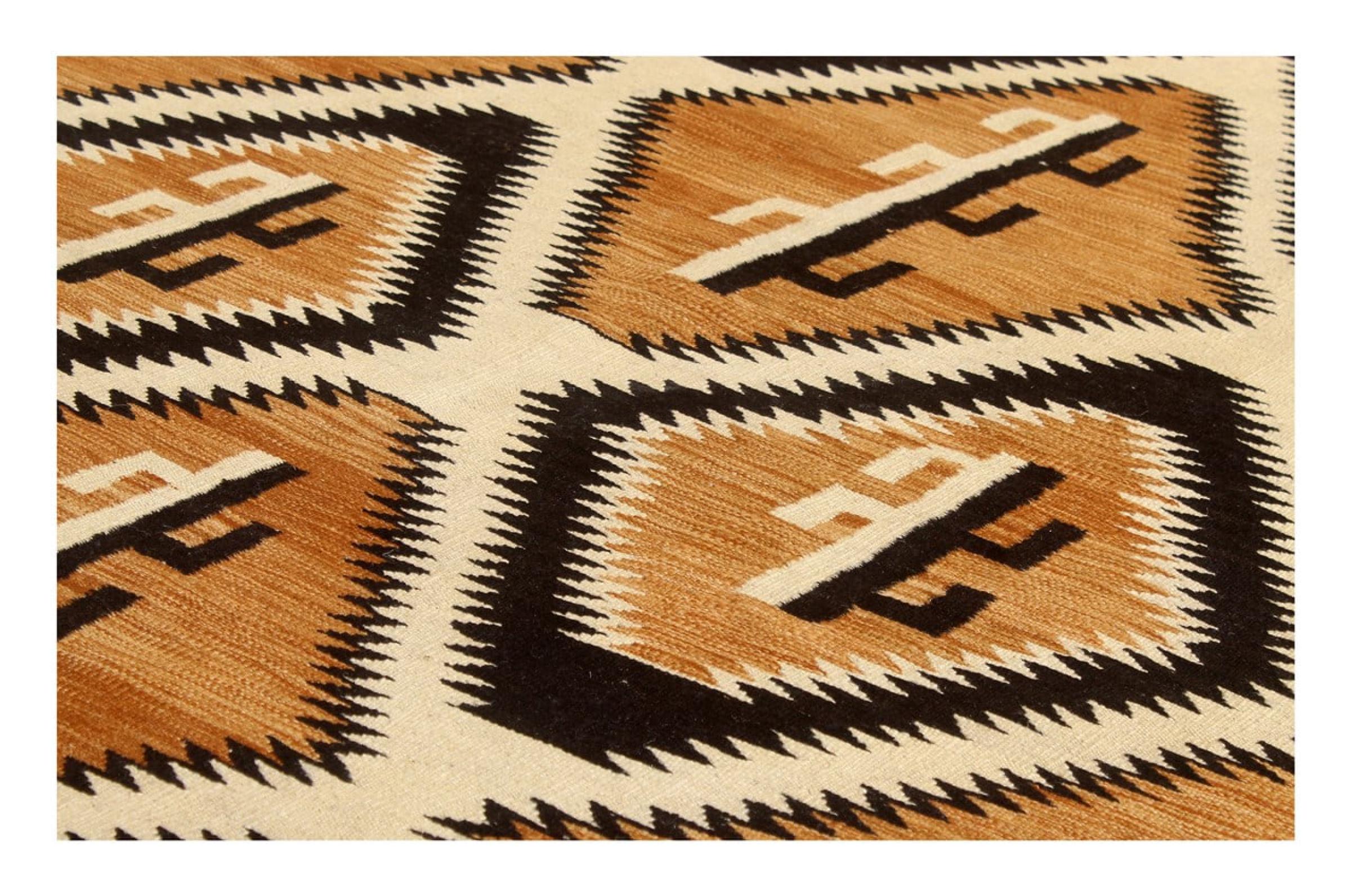 These Kilim rugs have a significant difference from hand-knotted rugs—they are handwoven. As a result, they do not have a high pile of wool and are often flatter and rougher than knotted wool rugs. Their construction is less intricate, making them generally much more affordable. Additionally, Kilim rugs are much lighter and can be laid out on either side. Handwoven Kilims originally come from what was once Persia and are now also widely produced in Afghanistan. They typically feature simple, straight-line patterns, which are characteristic of their weaving technique.