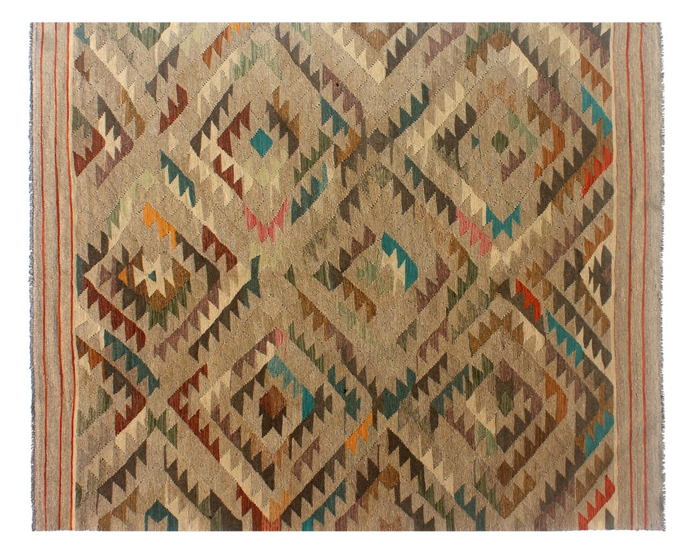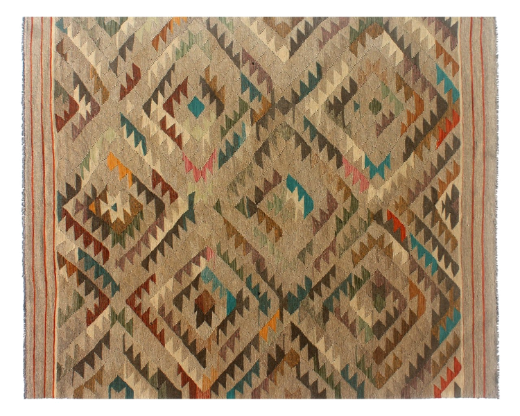 Rug ID: 305944006550397 Size: 9'7"x6'6" ft Thickness: ap. 0.12 in Manufacturing: Woven by hand Pile: Handspun wool Warp: Sheep wool Origin: Afghanistan Age: New Weight: ap. 20 lb Also know as Kilim, Qilim, Chilim, Afgan, Afghán In stock: Unique - Only 1 in stock