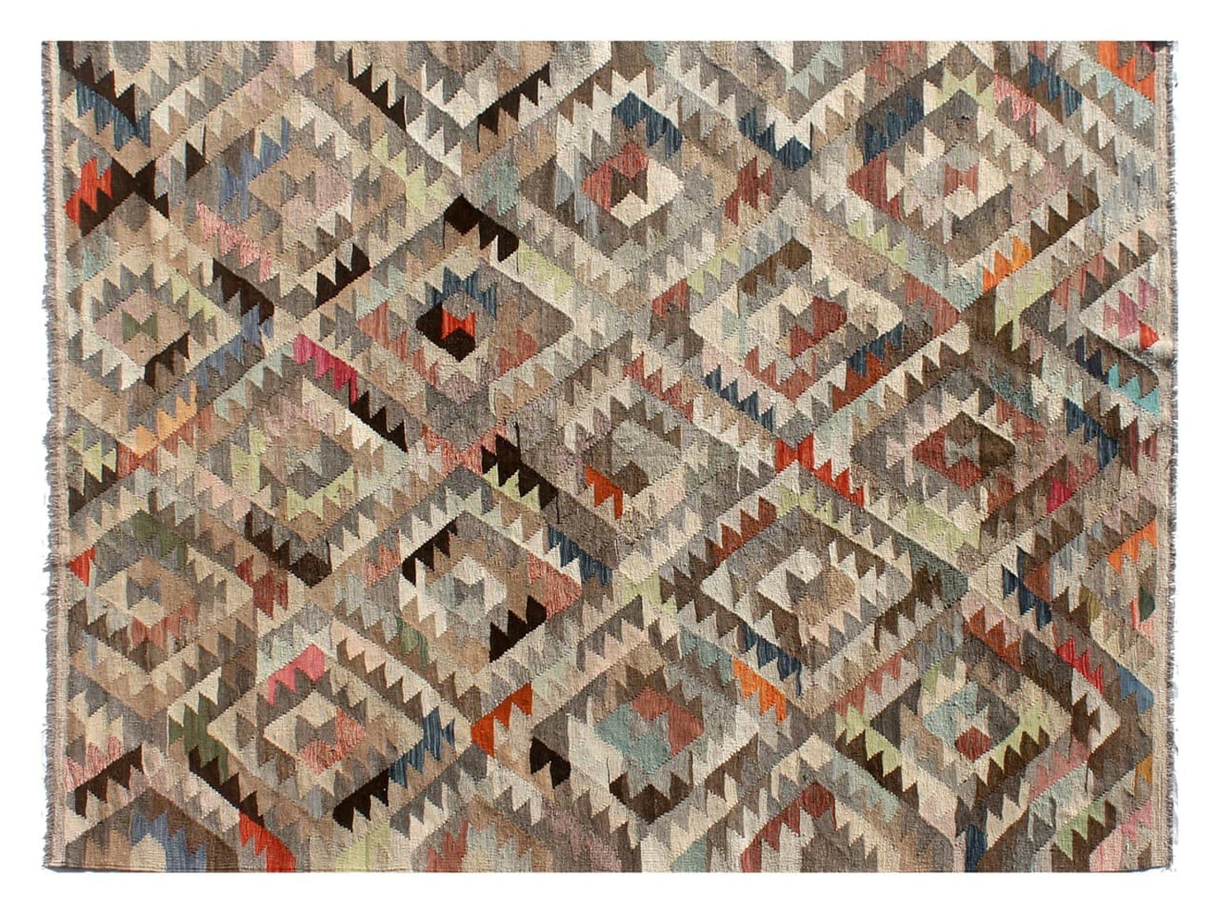 These Kilim rugs have a significant difference from hand-knotted rugs—they are handwoven. As a result, they do not have a high pile of wool and are often flatter and rougher than knotted wool rugs. Their construction is less intricate, making them generally much more affordable. Additionally, Kilim rugs are much lighter and can be laid out on either side. Handwoven Kilims originally come from what was once Persia and are now also widely produced in Afghanistan. They typically feature simple, straight-line patterns, which are characteristic of their weaving technique.