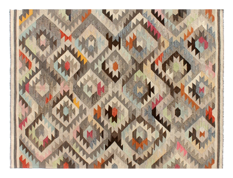 Rug ID: 305707007865570 Size: 9'10"x6'8" ft Thickness: ap. 0.12 in Manufacturing: Woven by hand Pile: Handspun wool Warp: Sheep wool Origin: Afghanistan Age: New Weight: ap. 20 lb Also know as Kilim, Qilim, Chilim, Afgan, Afghán In stock: Unique - Only 1 in stock