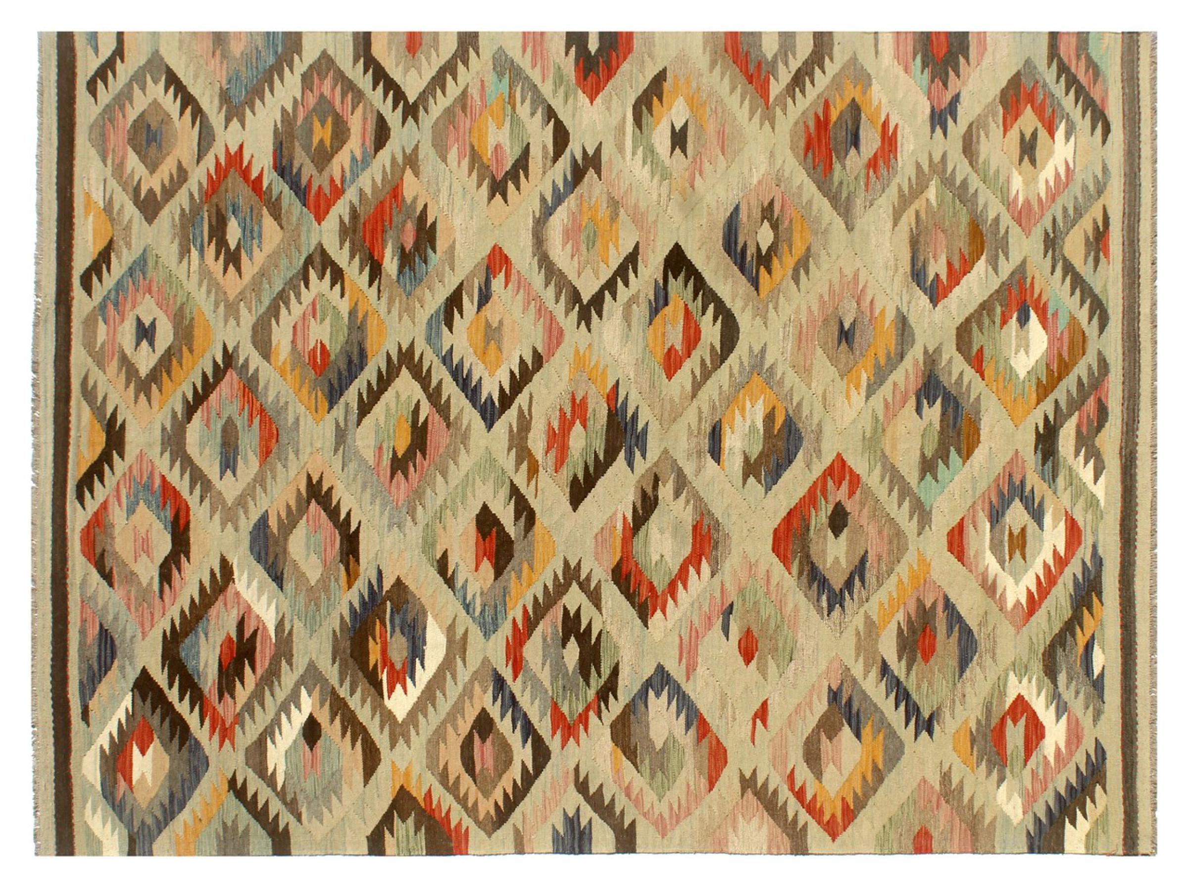Rug ID: 304276006691843 Size: 9'11"x6'8" ft Thickness: ap. 0.12 in Manufacturing: Woven by hand Pile: Handspun wool Warp: Sheep wool Origin: Afghanistan Age: New Weight: ap. 20 lb Also know as Kilim, Qilim, Chilim, Afgan, Afghán In stock: Unique - Only 1 in stock
