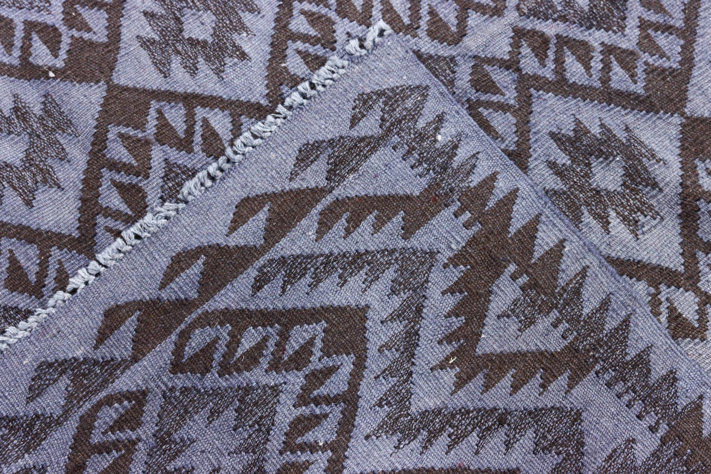 This rug was made as a flat weave by hand on a loom. Flatweave is the term used to describe rugs that have no pile. As the name promises, these rugs are woven and not knotted. This results in a flat rug with a structured surface. Flatweaves are not as soft and usually thinner than knotted rugs. At the same time they are much less complex to manufacture and can usually be laid out from both sides (front and back). Their patterns are usually geometric, which is determined by the fabric.