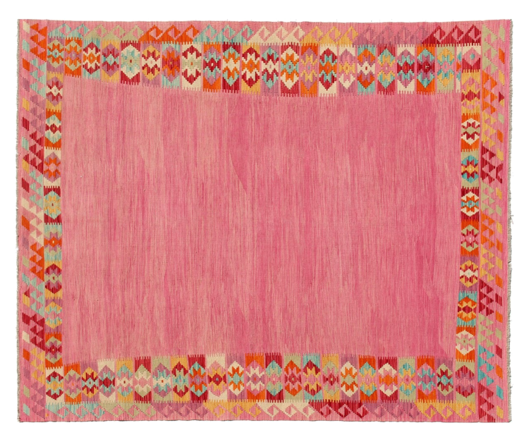 These Kilim rugs have a significant difference from hand-knotted rugs—they are handwoven. As a result, they do not have a high pile of wool and are often flatter and rougher than knotted wool rugs. Their construction is less intricate, making them generally much more affordable. Additionally, Kilim rugs are much lighter and can be laid out on either side. Handwoven Kilims originally come from what was once Persia and are now also widely produced in Afghanistan. They typically feature simple, straight-line patterns, which are characteristic of their weaving technique.