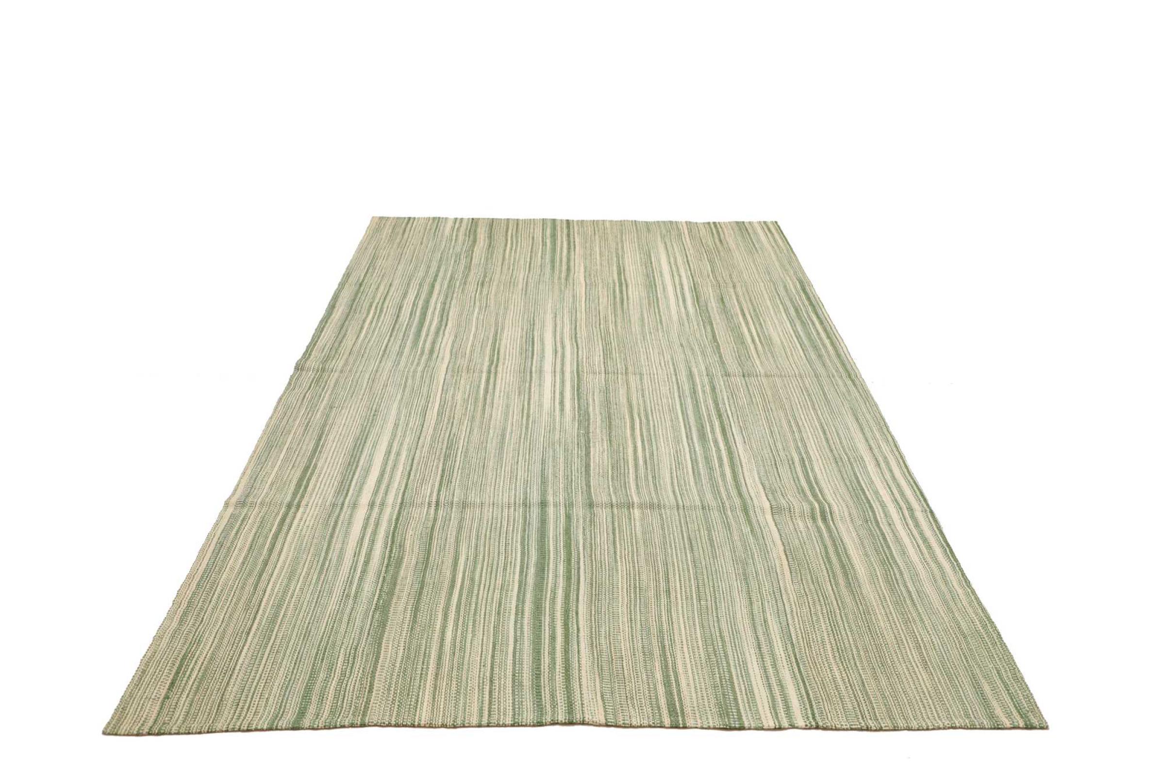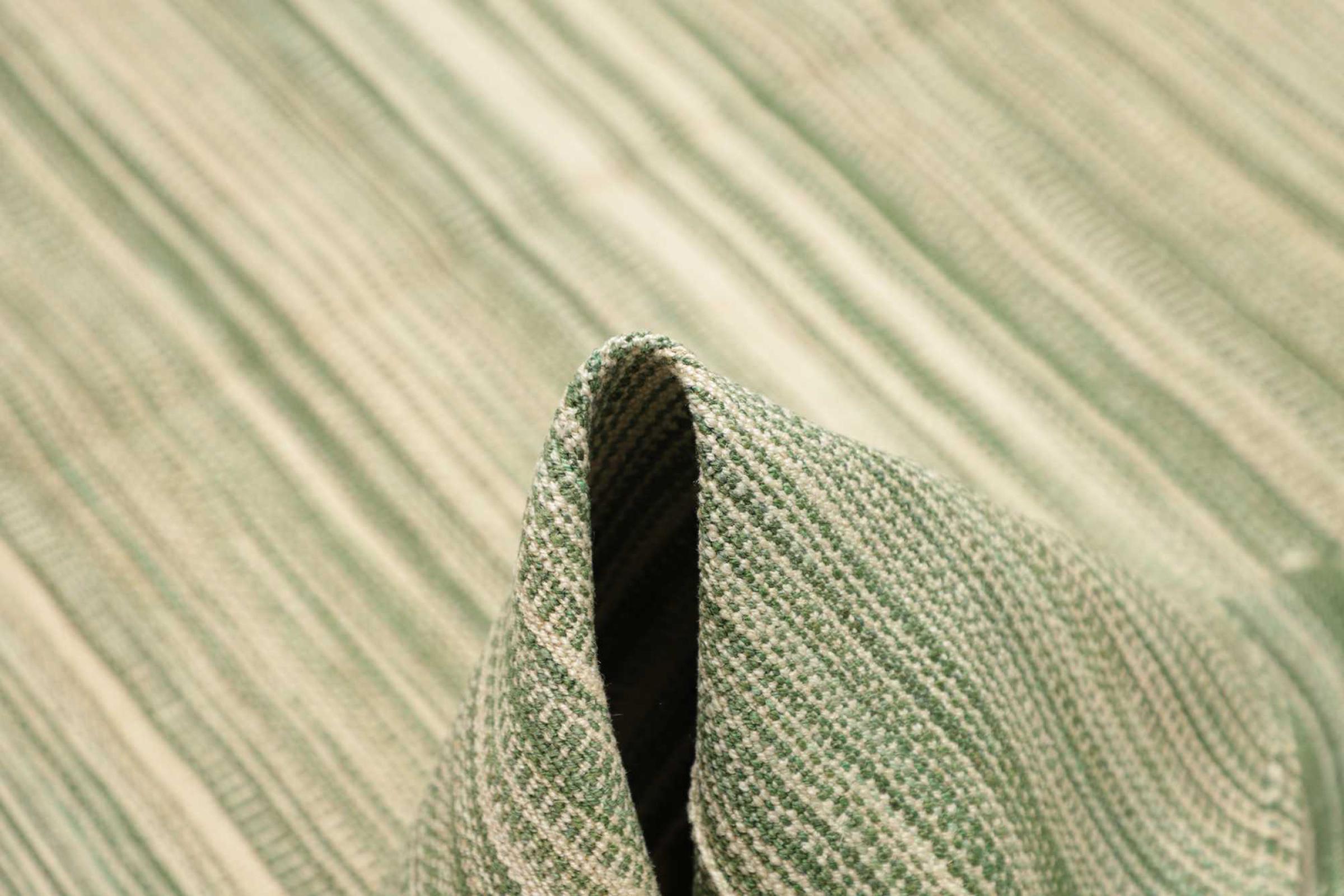 This rug was made as a flat weave by hand on a loom. Flatweave is the term used to describe rugs that have no pile. As the name promises, these rugs are woven and not knotted. This results in a flat rug with a structured surface. Flatweaves are not as soft and usually thinner than knotted rugs. At the same time they are much less complex to manufacture and can usually be laid out from both sides (front and back). Their patterns are usually geometric, which is determined by the fabric.