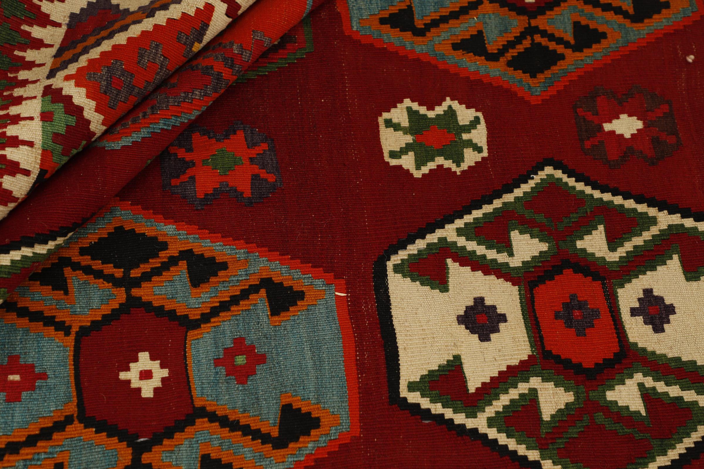 This rug was made as a flat weave by hand on a loom. Flatweave is the term used to describe rugs that have no pile. As the name promises, these rugs are woven and not knotted. This results in a flat rug with a structured surface. Flatweaves are not as soft and usually thinner than knotted rugs. At the same time they are much less complex to manufacture and can usually be laid out from both sides (front and back). Their patterns are usually geometric, which is determined by the fabric.