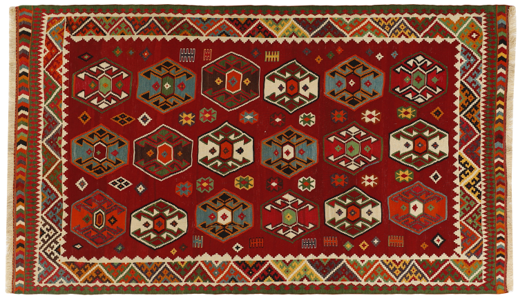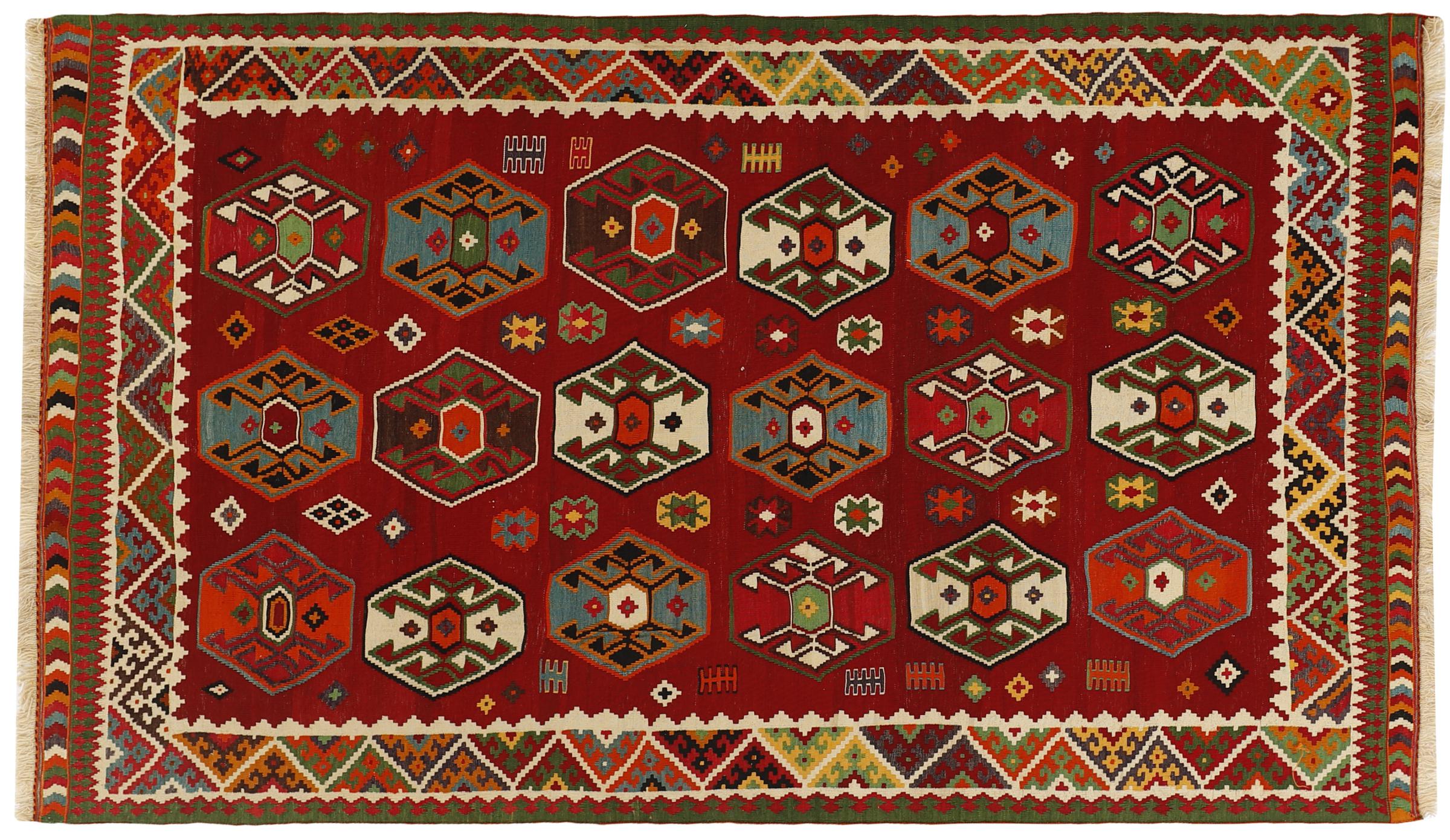 These Kilim rugs have a significant difference from hand-knotted rugs—they are handwoven. As a result, they do not have a high pile of wool and are often flatter and rougher than knotted wool rugs. Their construction is less intricate, making them generally much more affordable. Additionally, Kilim rugs are much lighter and can be laid out on either side. Handwoven Kilims originally come from what was once Persia and are now also widely produced in Afghanistan. They typically feature simple, straight-line patterns, which are characteristic of their weaving technique.