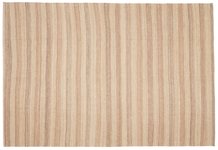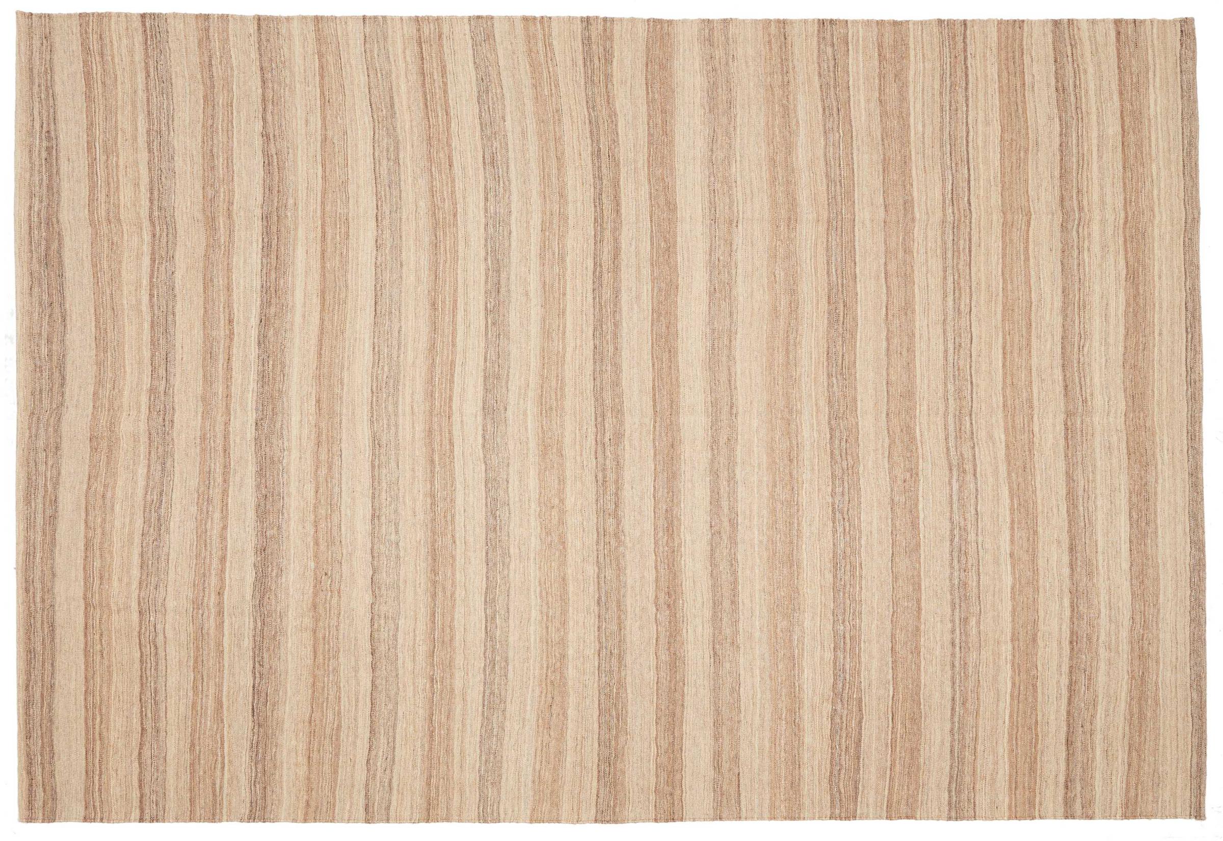 This rug was made as a flat weave by hand on a loom. Flatweave is the term used to describe rugs that have no pile. As the name promises, these rugs are woven and not knotted. This results in a flat rug with a structured surface. Flatweaves are not as soft and usually thinner than knotted rugs. At the same time they are much less complex to manufacture and can usually be laid out from both sides (front and back). Their patterns are usually geometric, which is determined by the fabric.