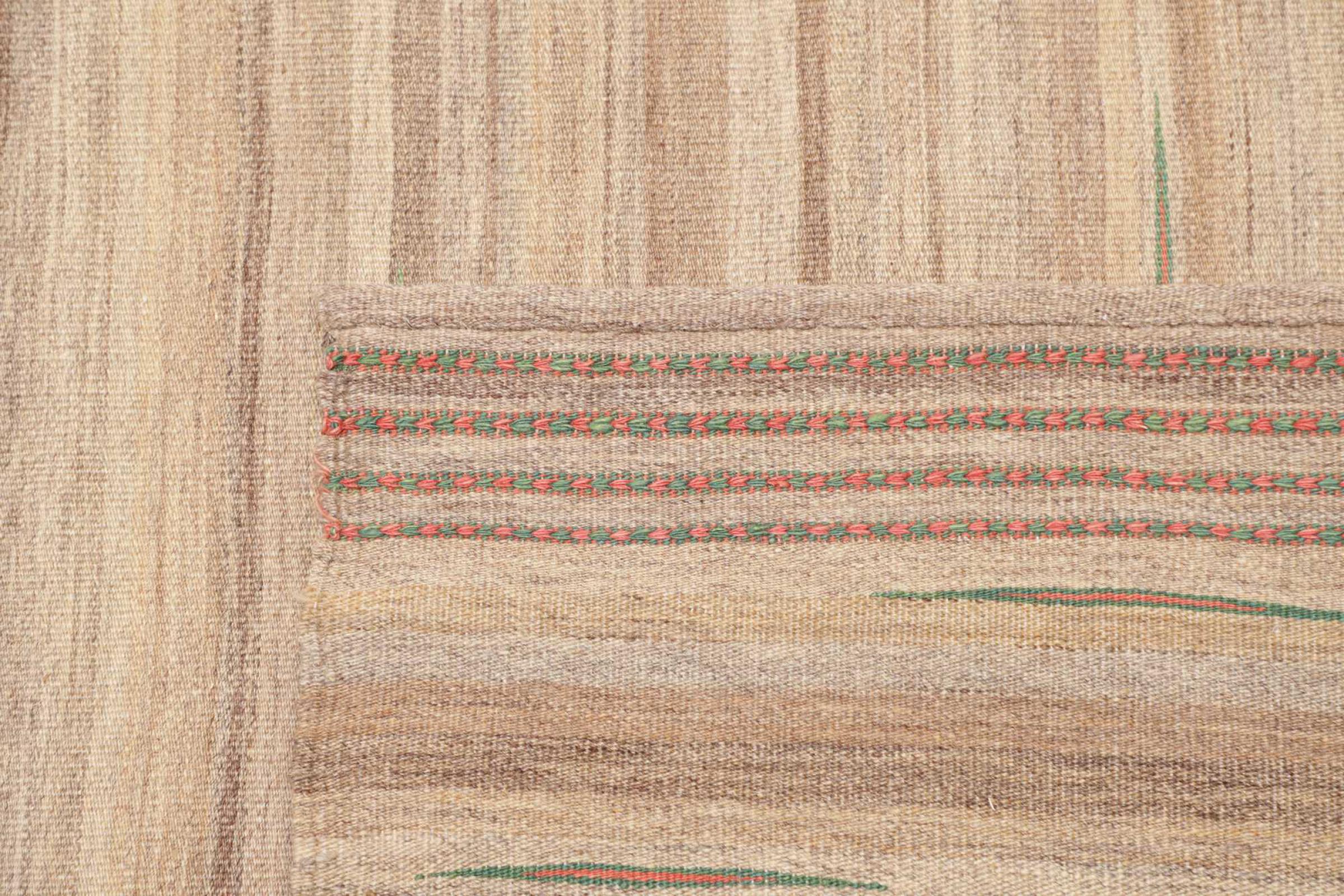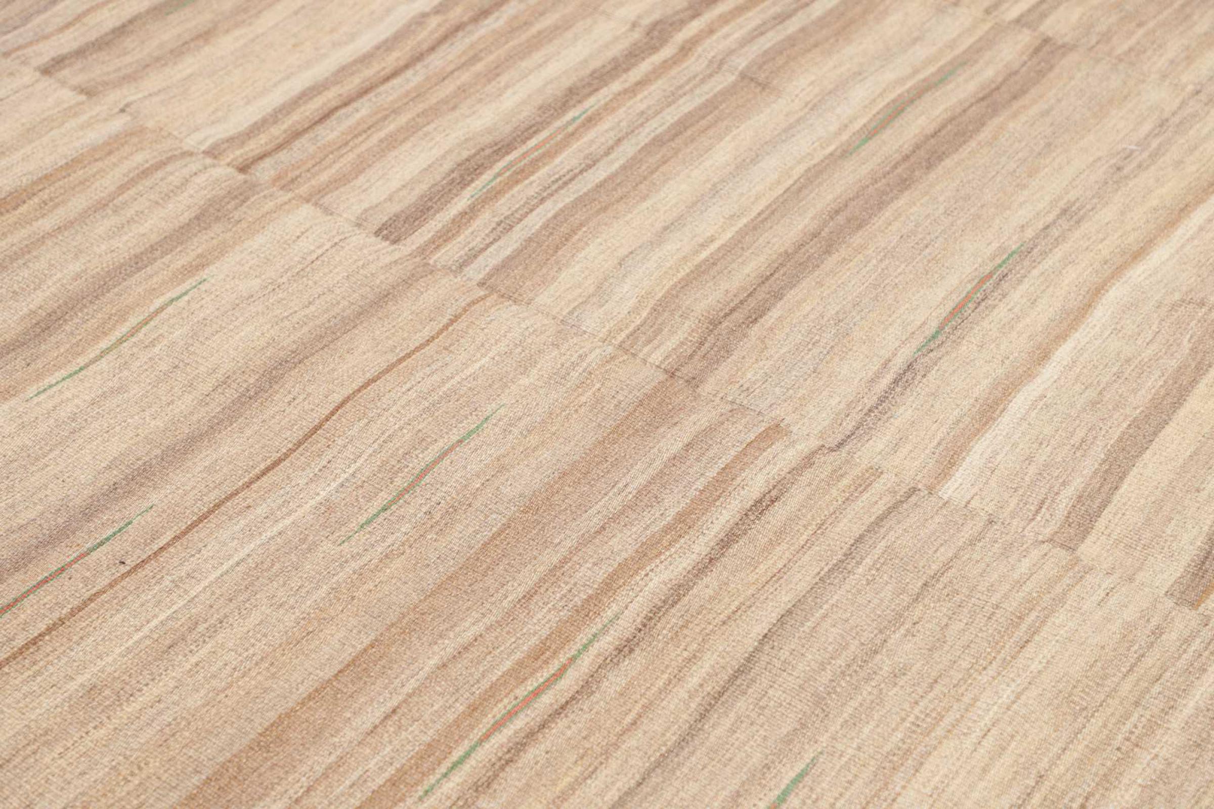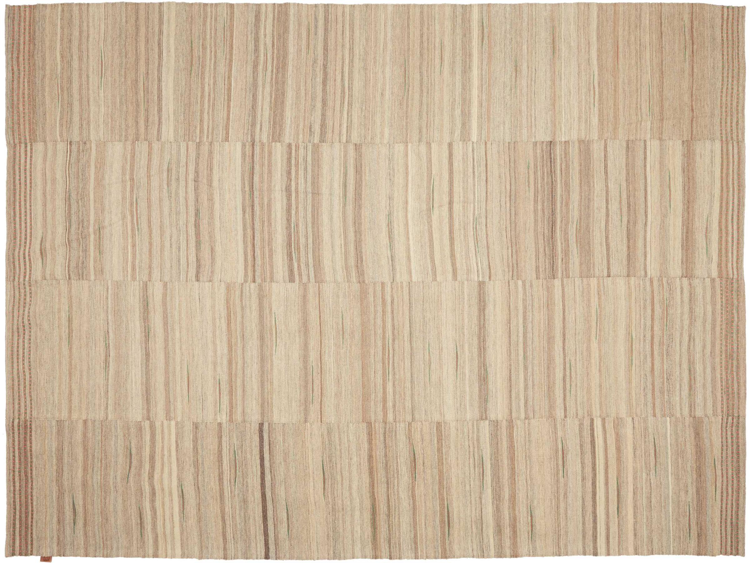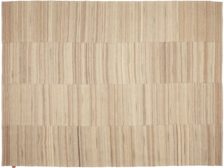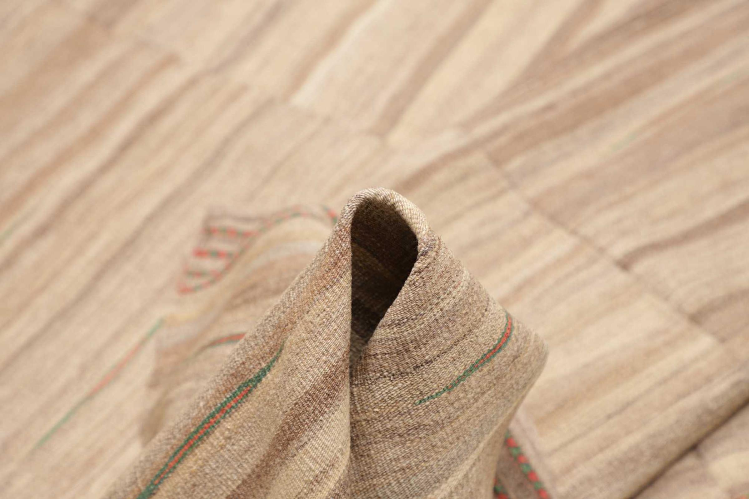 This rug was made as a flat weave by hand on a loom. Flatweave is the term used to describe rugs that have no pile. As the name promises, these rugs are woven and not knotted. This results in a flat rug with a structured surface. Flatweaves are not as soft and usually thinner than knotted rugs. At the same time they are much less complex to manufacture and can usually be laid out from both sides (front and back). Their patterns are usually geometric, which is determined by the fabric.