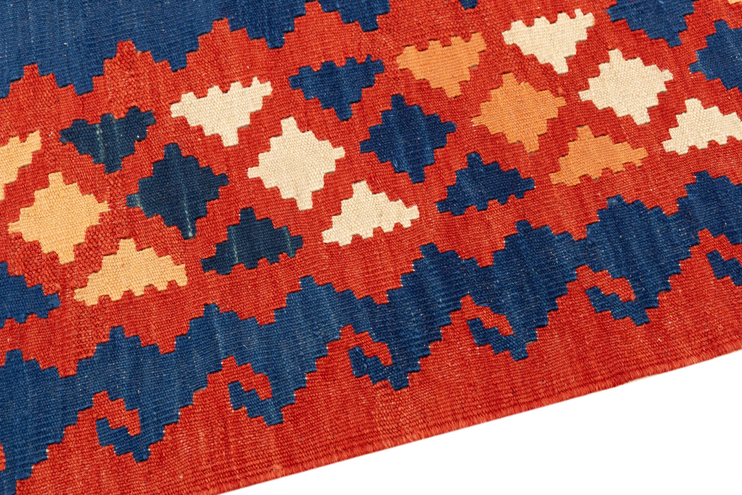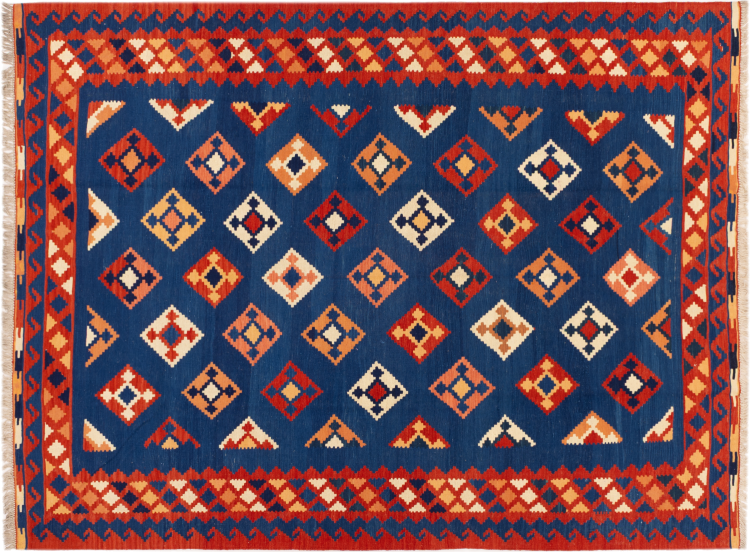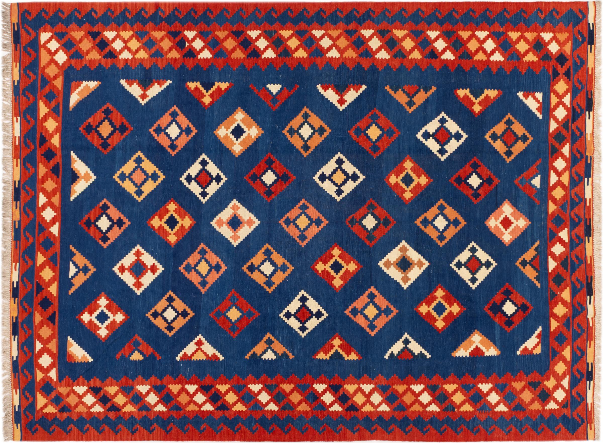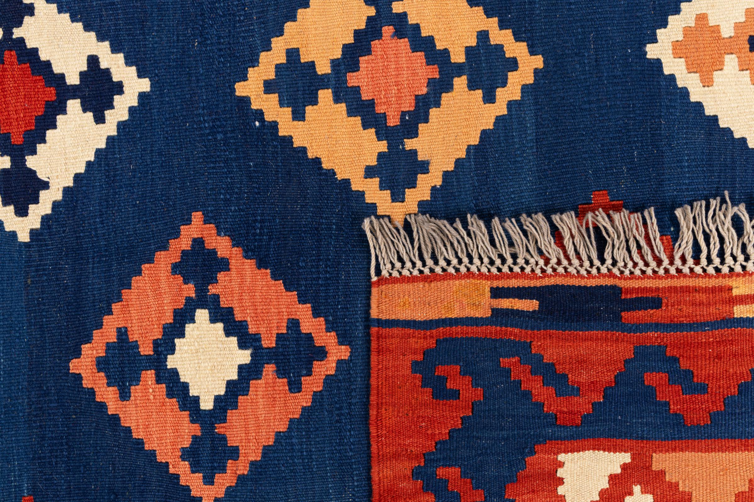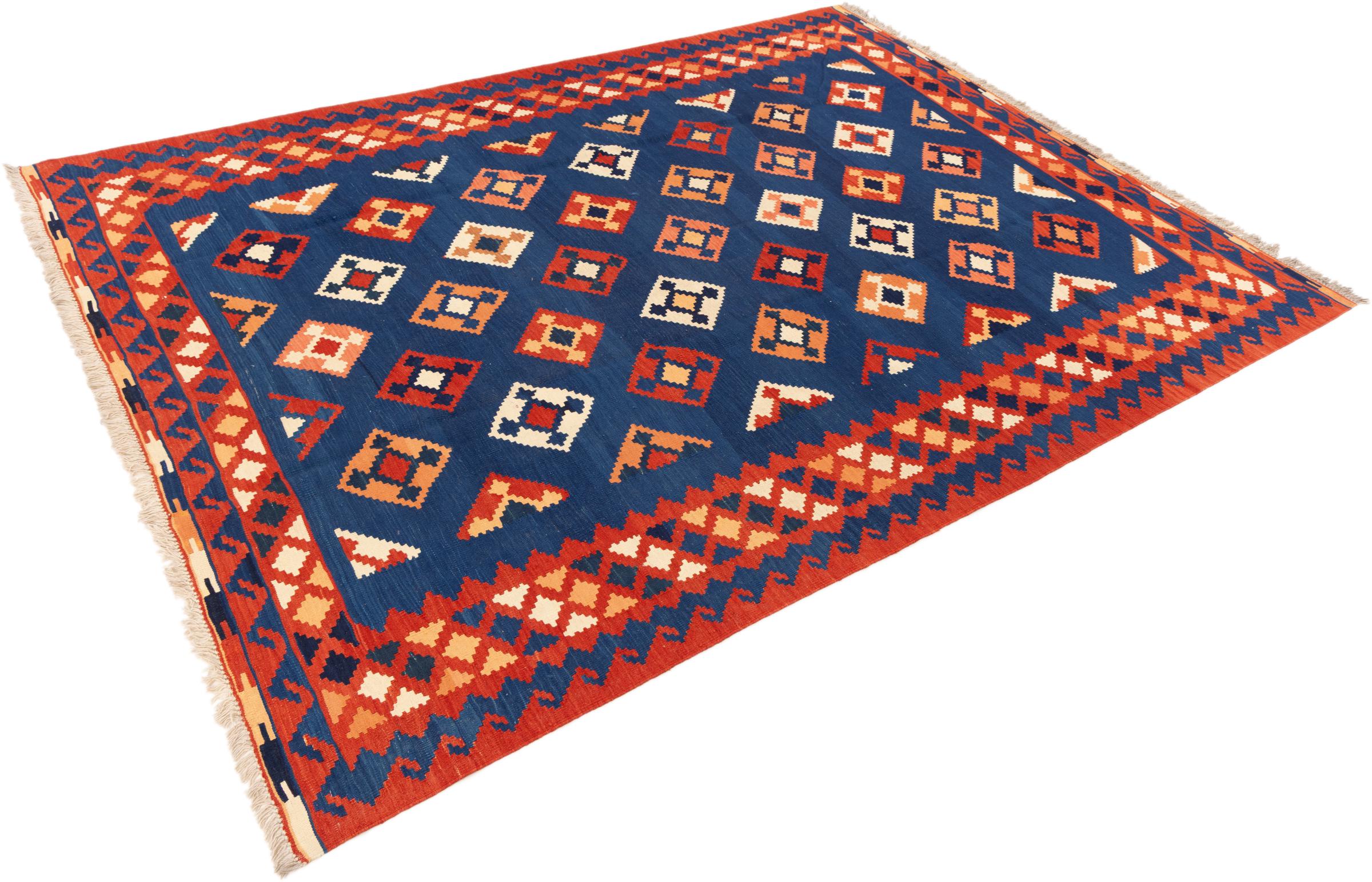 These Kilim rugs have a significant difference from hand-knotted rugs—they are handwoven. As a result, they do not have a high pile of wool and are often flatter and rougher than knotted wool rugs. Their construction is less intricate, making them generally much more affordable. Additionally, Kilim rugs are much lighter and can be laid out on either side. Handwoven Kilims originally come from what was once Persia and are now also widely produced in Afghanistan. They typically feature simple, straight-line patterns, which are characteristic of their weaving technique.