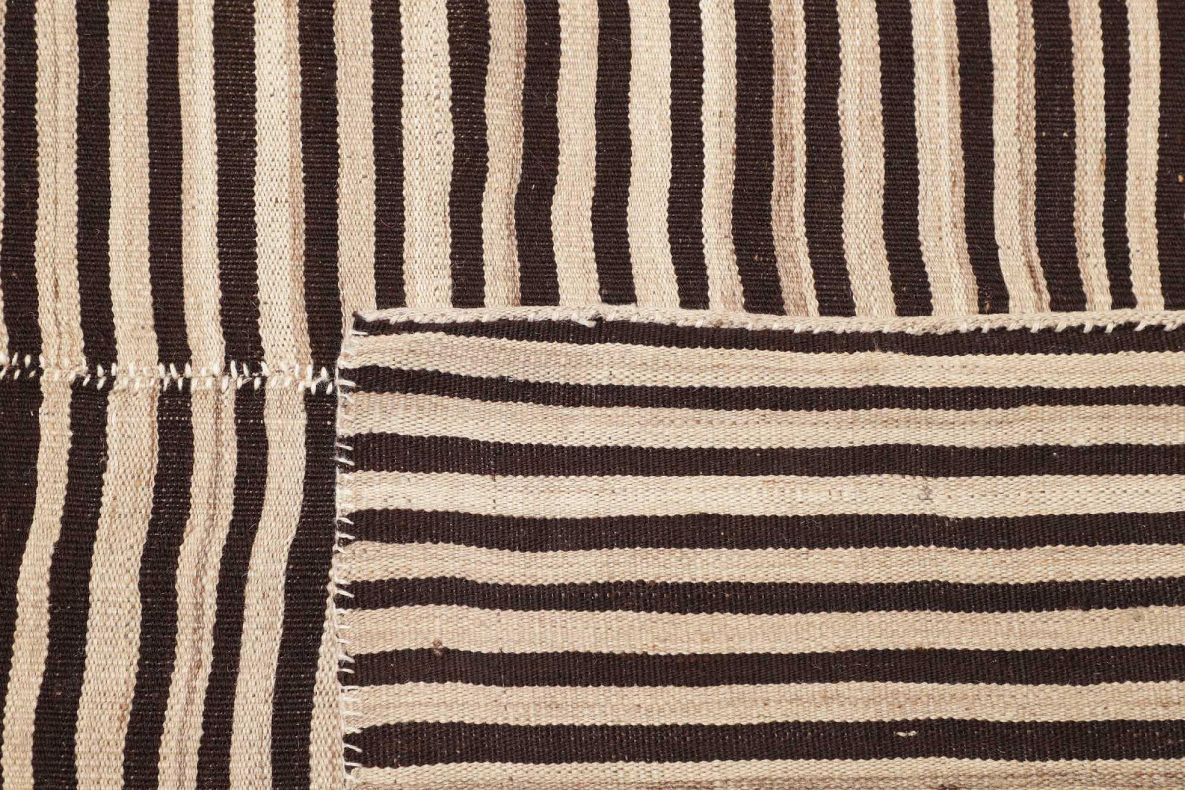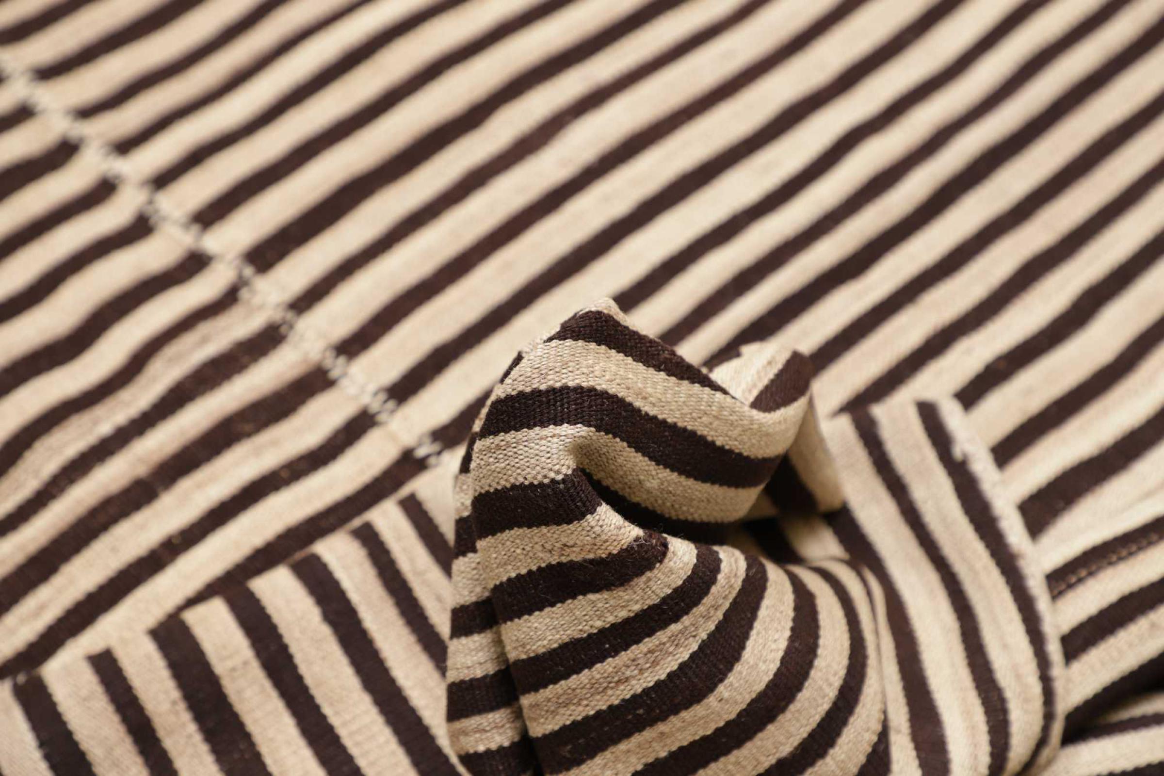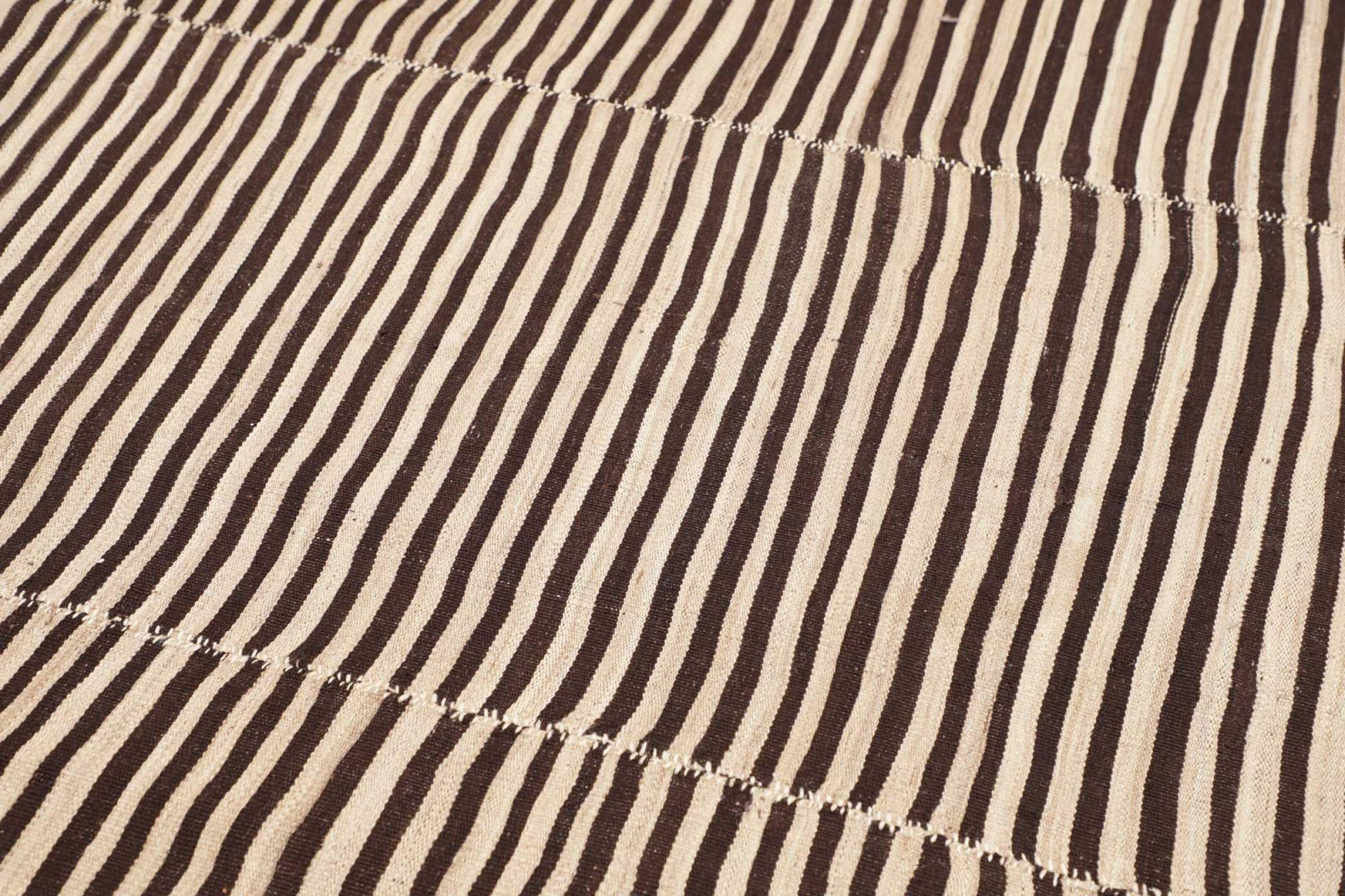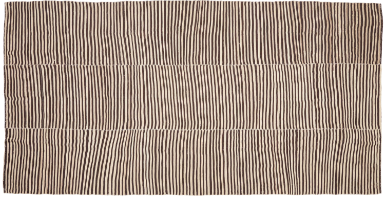 This rug was made as a flat weave by hand on a loom. Flatweave is the term used to describe rugs that have no pile. As the name promises, these rugs are woven and not knotted. This results in a flat rug with a structured surface. Flatweaves are not as soft and usually thinner than knotted rugs. At the same time they are much less complex to manufacture and can usually be laid out from both sides (front and back). Their patterns are usually geometric, which is determined by the fabric.