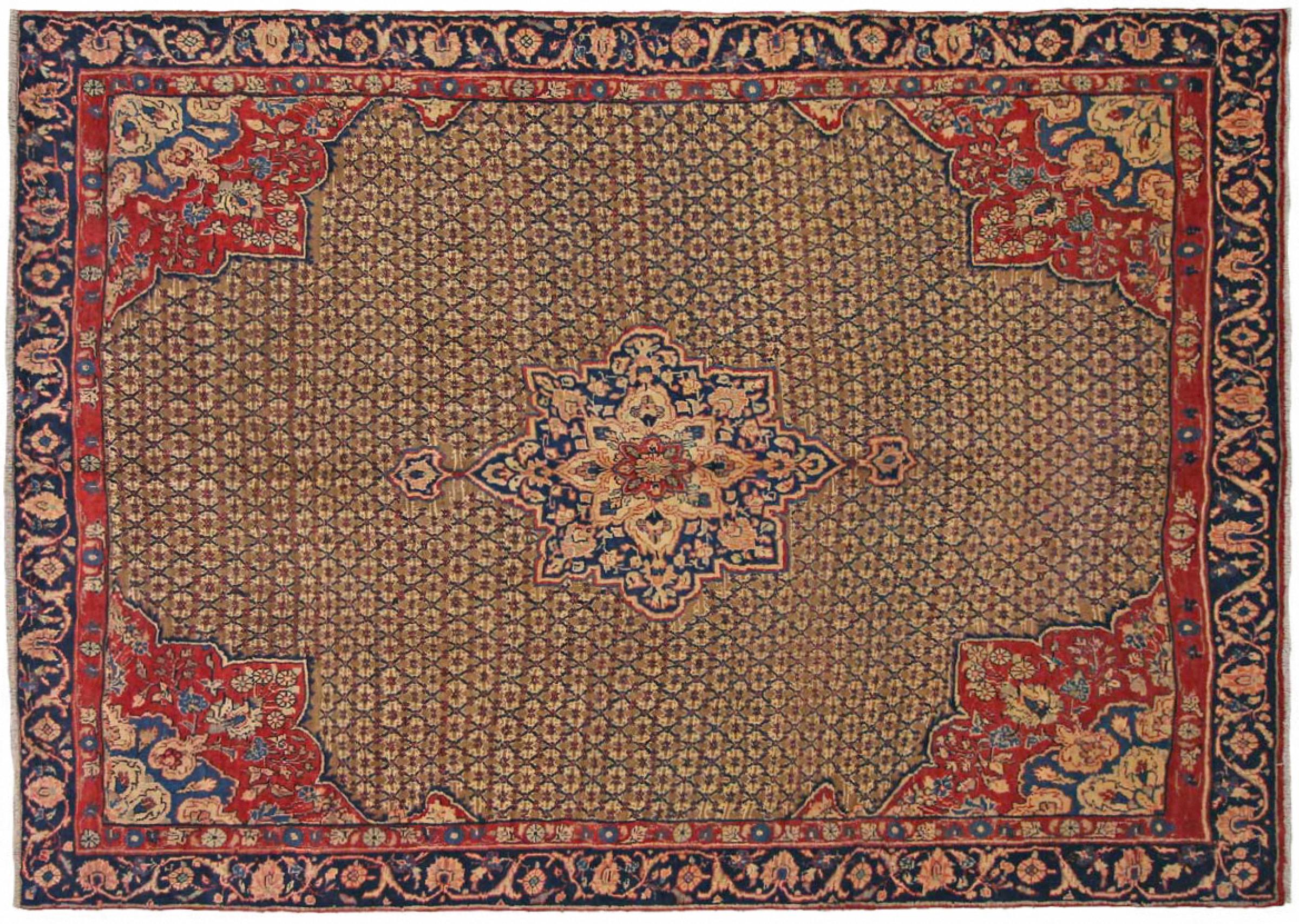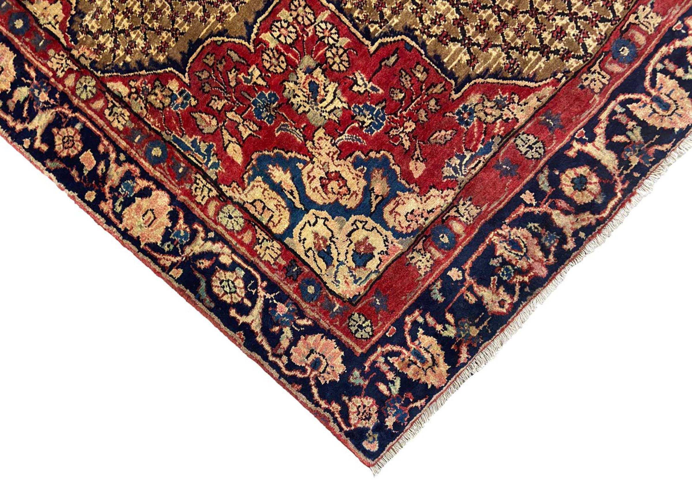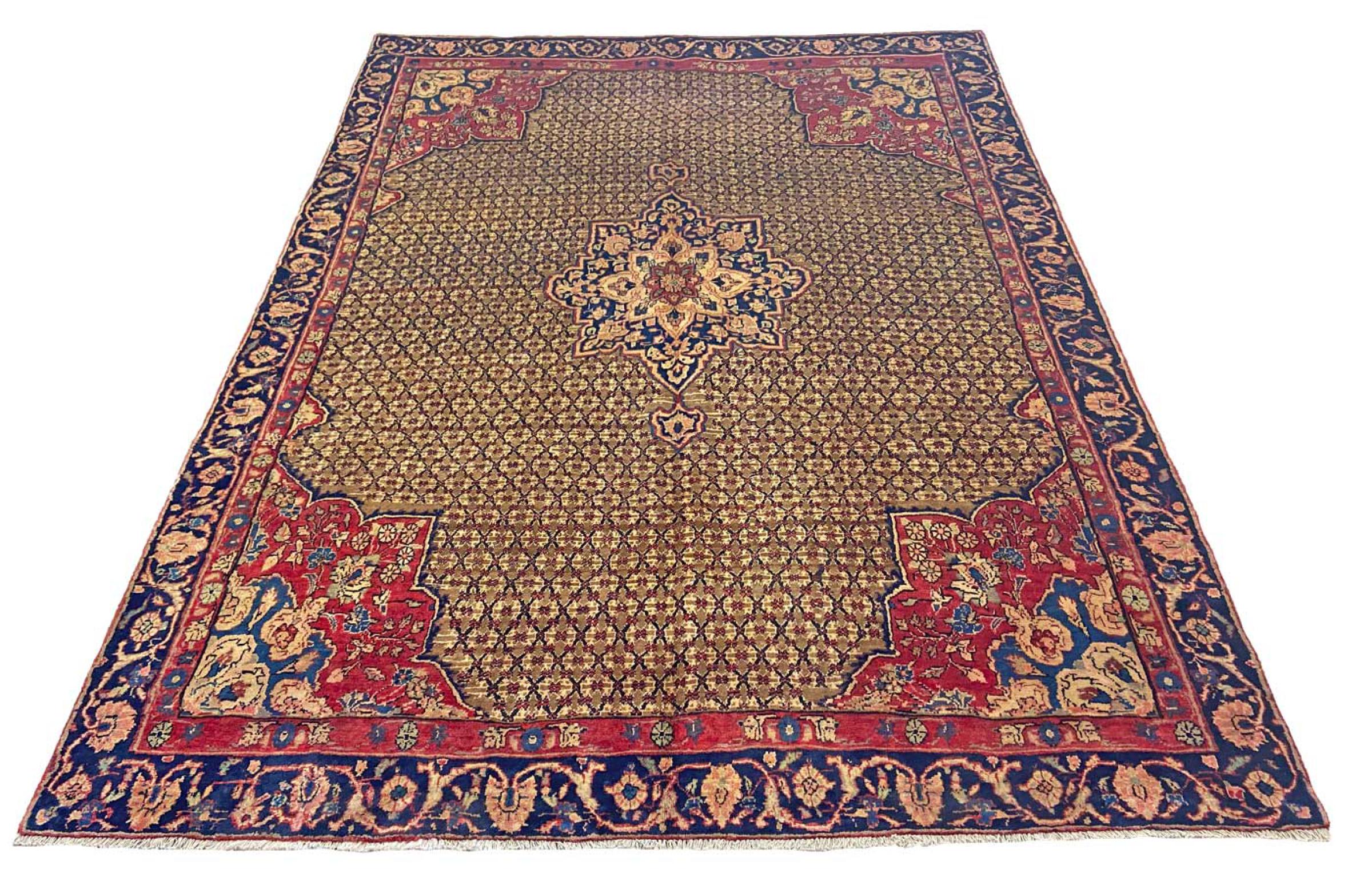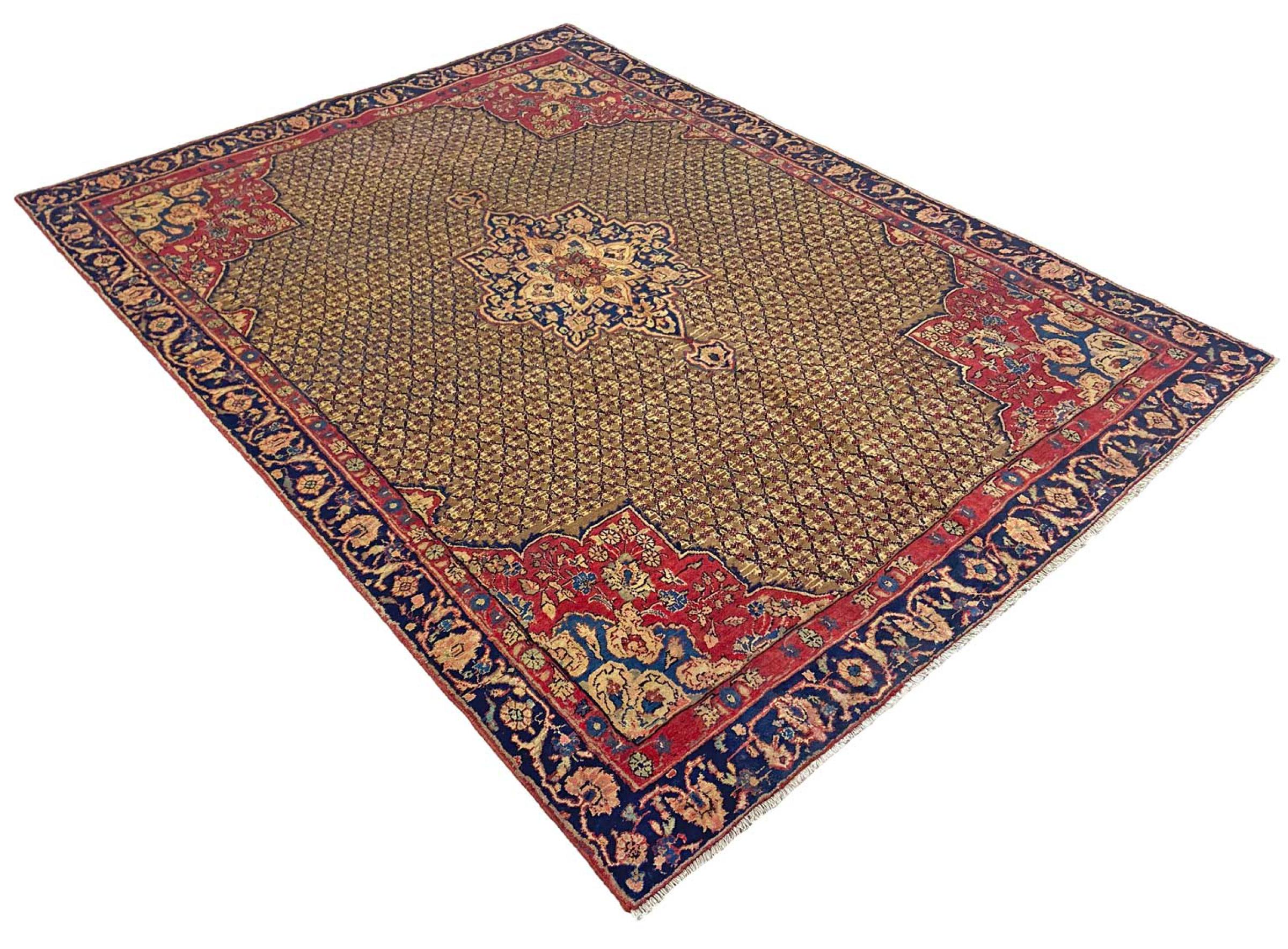 This carpet belongs to the village and nomadic carpets from Iran, the former Persia. This kind of carpets is hand knotted in smaller towns and villages in ancient tradition. Even nomads still knot Persian carpets in the open air. The carpets are knotted without a draft and entirely from memory. They are characterized by classical ornaments arranged in linear and geometric patterns. Thanks to their cultural and traditional origins, these rugs possess a unique character that embodies ancient Persia.